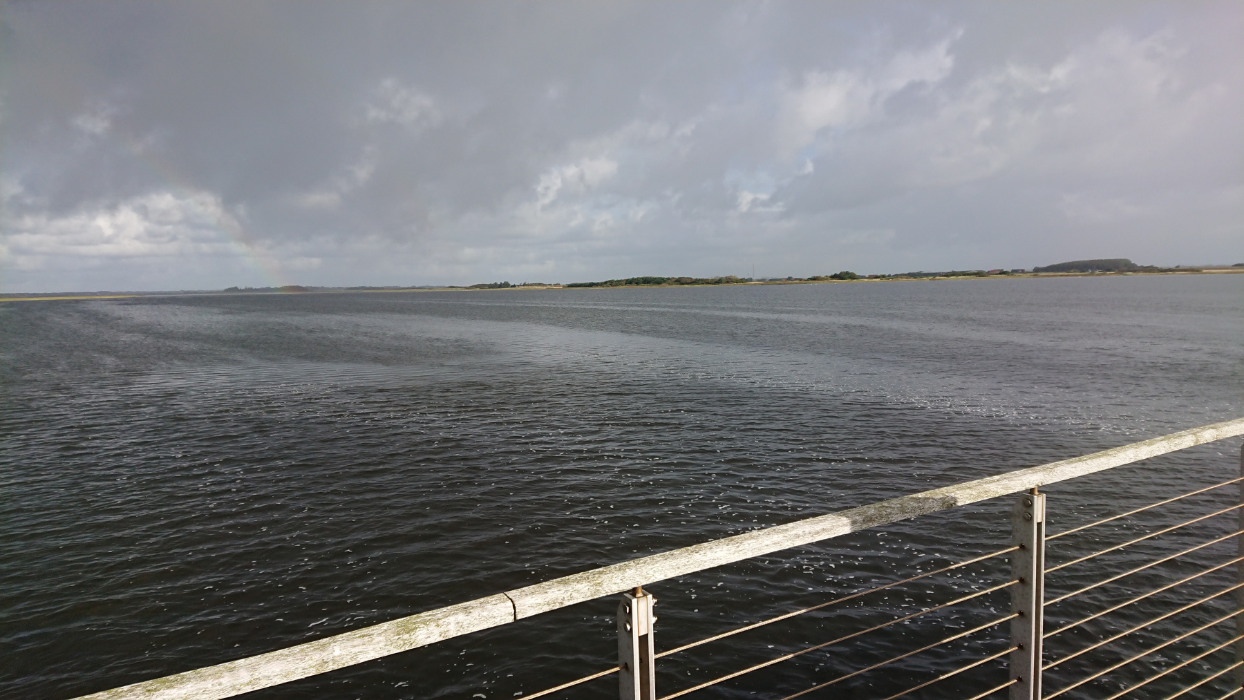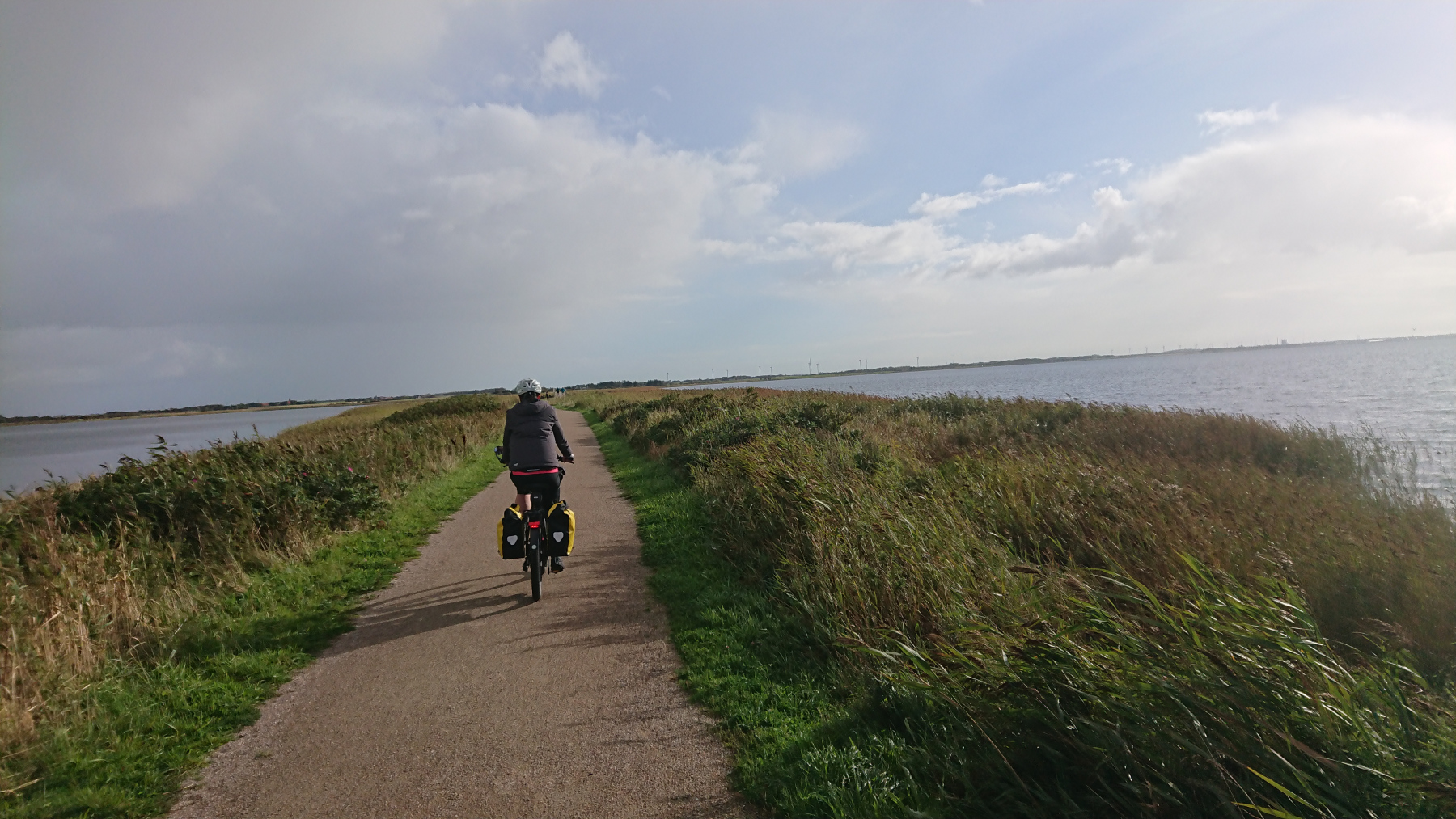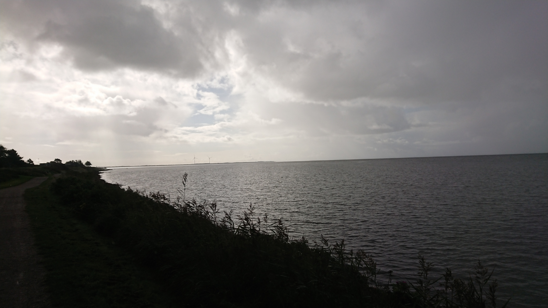 Nach kurzer Fahrt immer dicht am Fjord kommen wir nach Ringkøbing, und werden vom ersten Regenschauer eingeholt. Es wird nicht der letzte sein. Wir stellen uns in Ringkøbing erstmal unter, den Tag schon nass zu starten, das muss nicht sein.