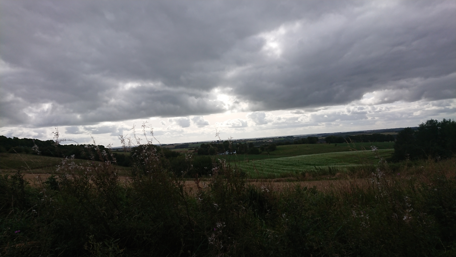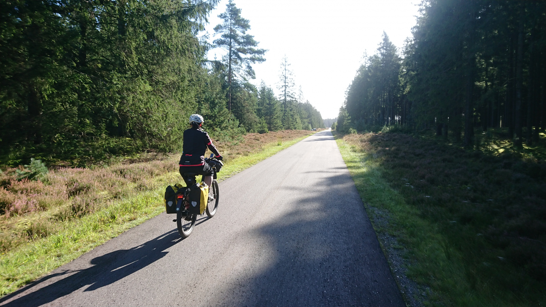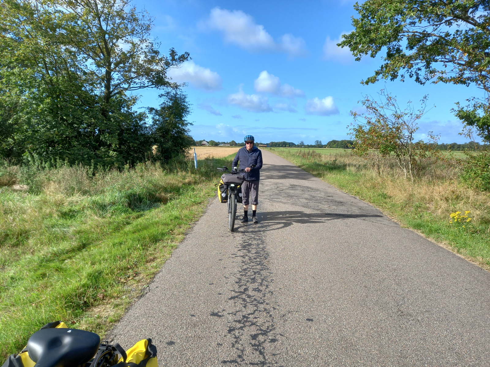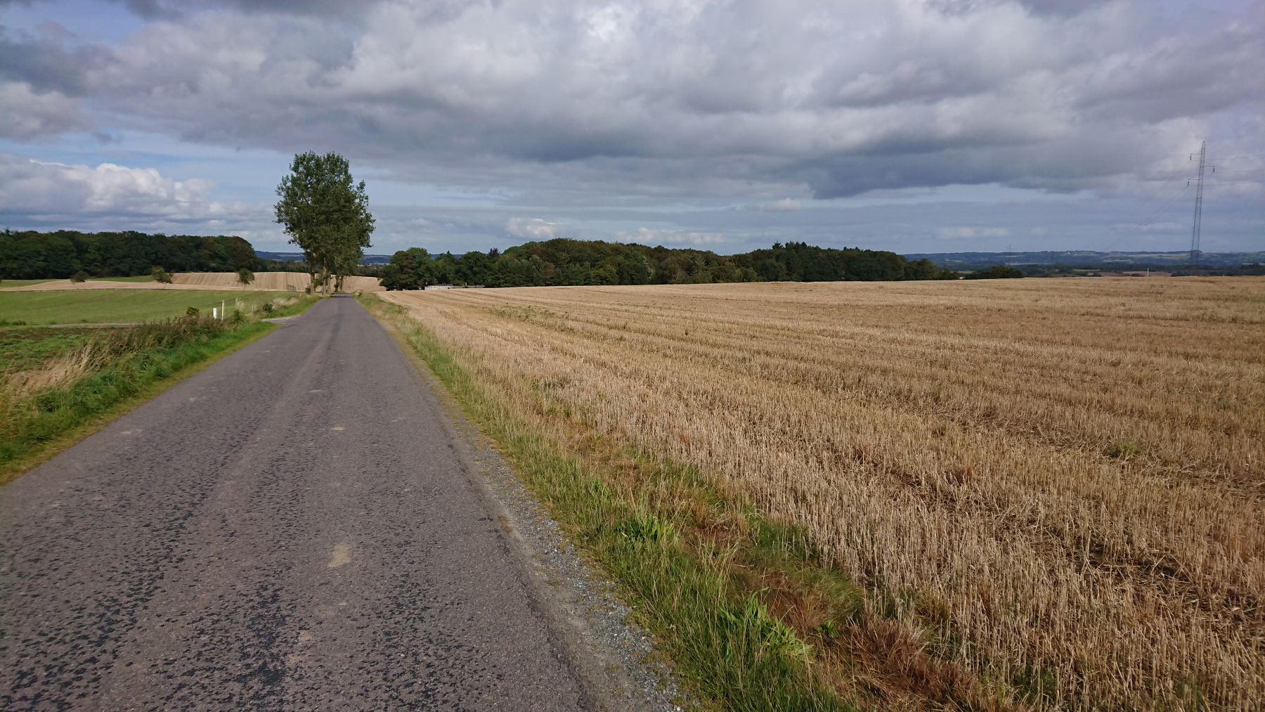 Ab Bædstrup folgen wir einer alten Bahntrasse. Leider zieht sich auch der Himmel weiter zu. Heute werden wir die Jacken wohl nicht los.