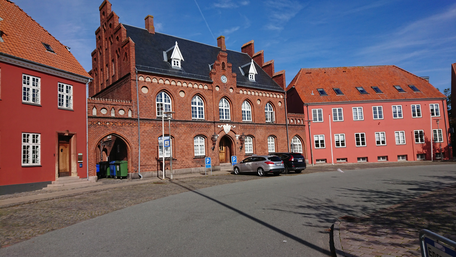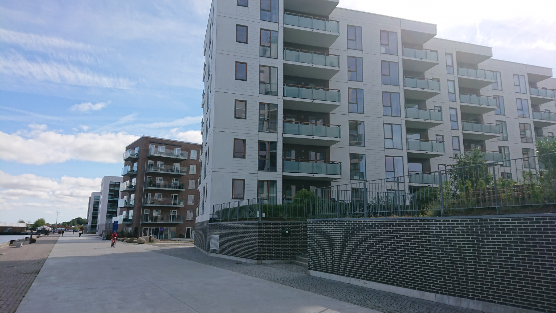Holbæk erreichen wir bei km 32 – Zeit für eine Pause am Hafen. Es ist etwa halb 12 Uhr, aber noch ist am Hafen wenig bis gar nichts los. Wir verspeisen den Kuchen, den wir kurz nach der Abfahrt bei einem Bäcker gekauft hatten, essen die letzten Bananen und den letzten Joghurt, der vom Frühstück noch übrig geblieben war.
