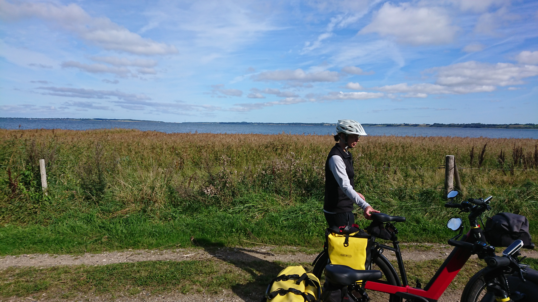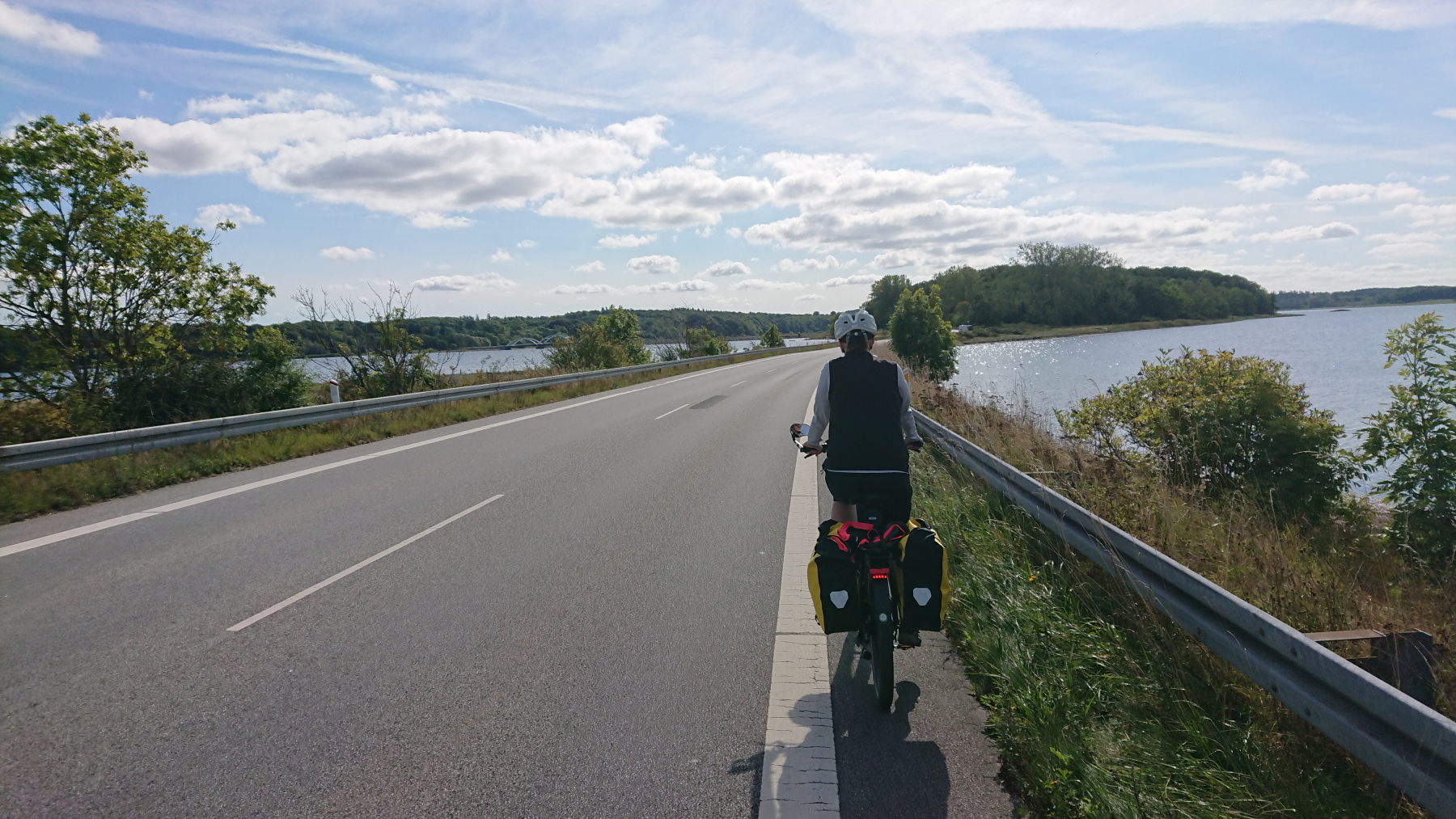 Und hier sieht man wieder, dass es auch in Dänemark mit Rücksicht nicht weit her ist und Seitenabstand zu Fahrradfahrern ein Fremdwort ist. Es wird überholt, als seien wir gar nicht da, mehr als einmal müssen wir auf den 30cm breiten Streifen rechts von der Linie ausweichen.