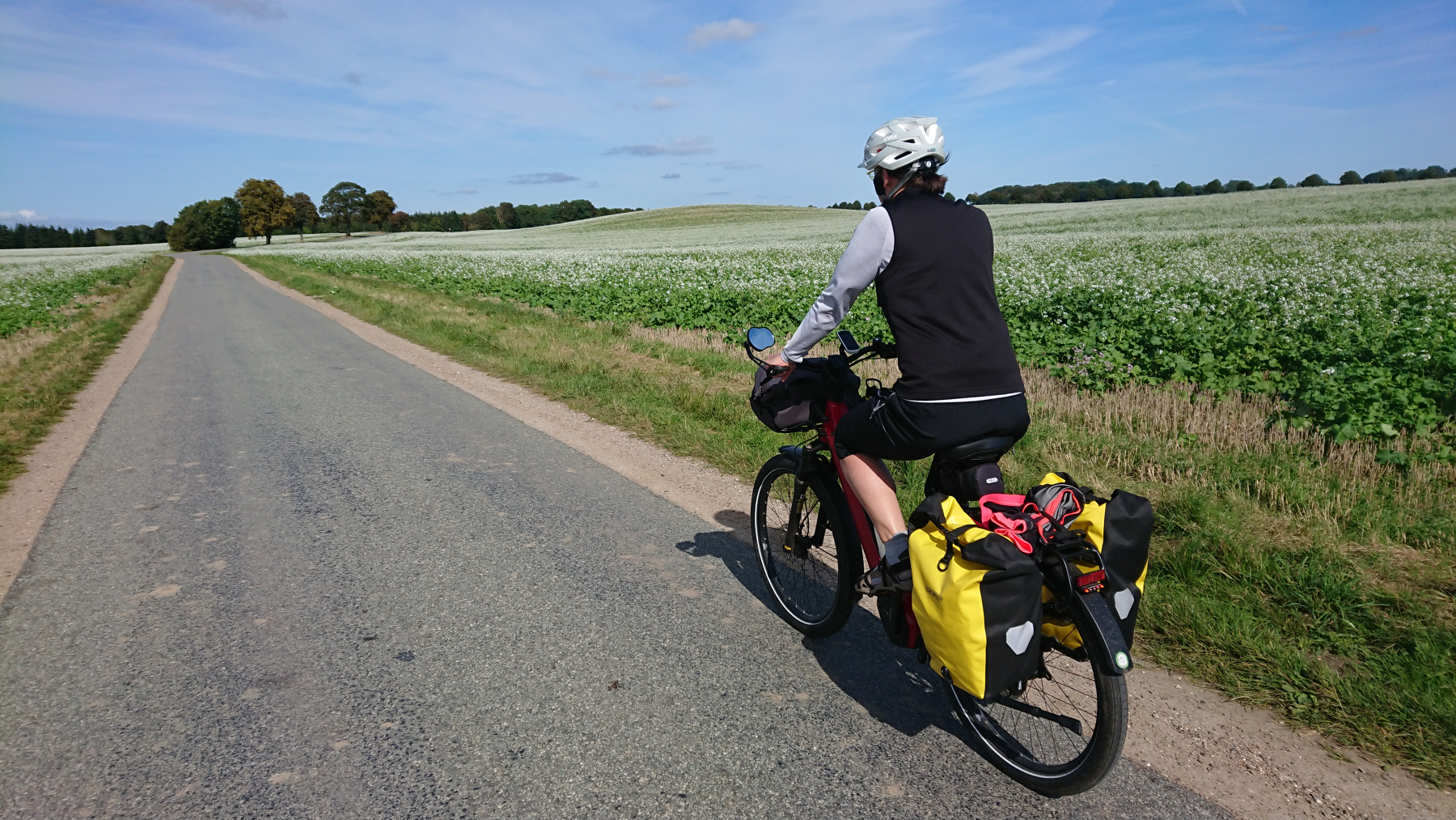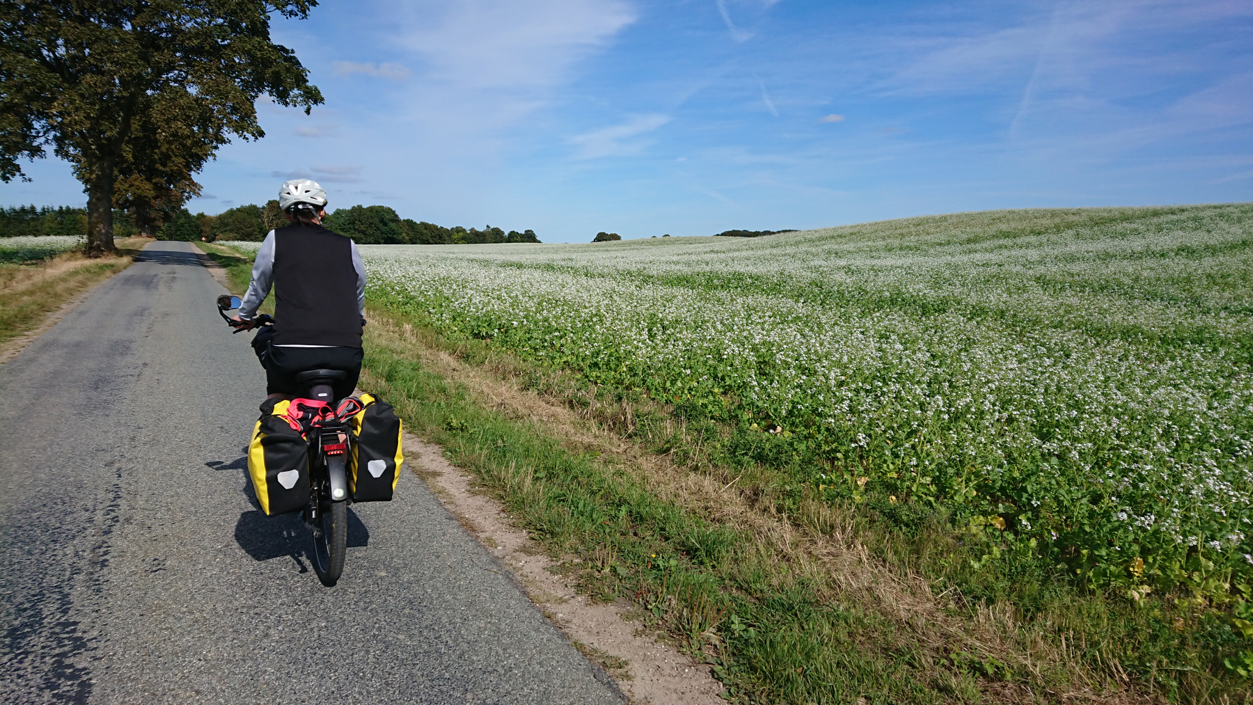 Kurz hinter Holbæk dann eine Schrecksekunde: aus einem von rechts einmündenden Pfad kommt ein Mountainbiker in hohem Tempo in Richtung Straße geschossen. Es kommt von vorne auch noch ein Auto. Will der noch vor dem Auto aus die Straße, das klappt nicht – meine ich. Und der Fahrer des Mountainbikes realisiert das auch, bremst – viel zu hart, rutscht weg und überschlägt sich mit dem Rad einmal über den Lenker. Wir versuchen zu helfen, auch der Autofahrer hält an und versucht zu helfen, aber augenscheinlich ist nicht viel passiert. Auf uns wirkt der Unglücksfahrer ein wenig benommen, aber er meint, dass alles okay sei und dass er alleine klar käme. Ins Krankenhaus oder zu einem Arzt wolle er nicht.