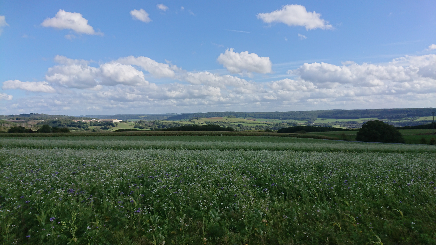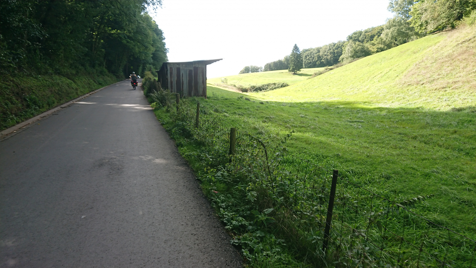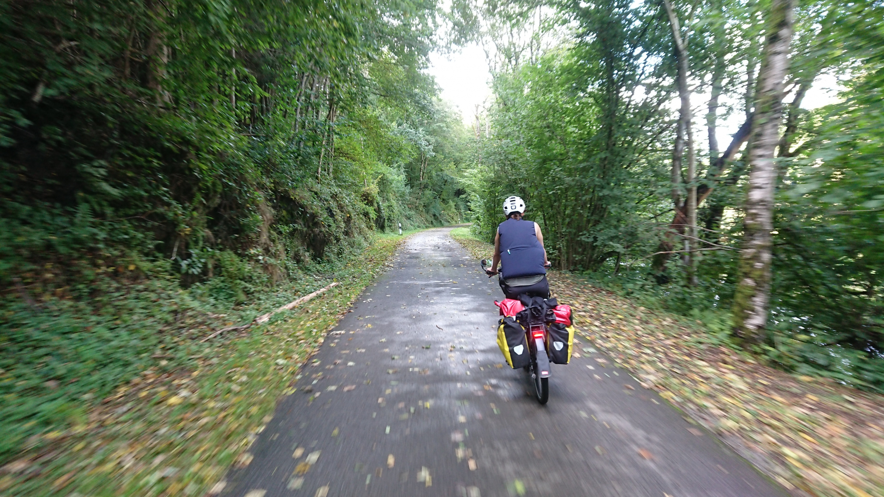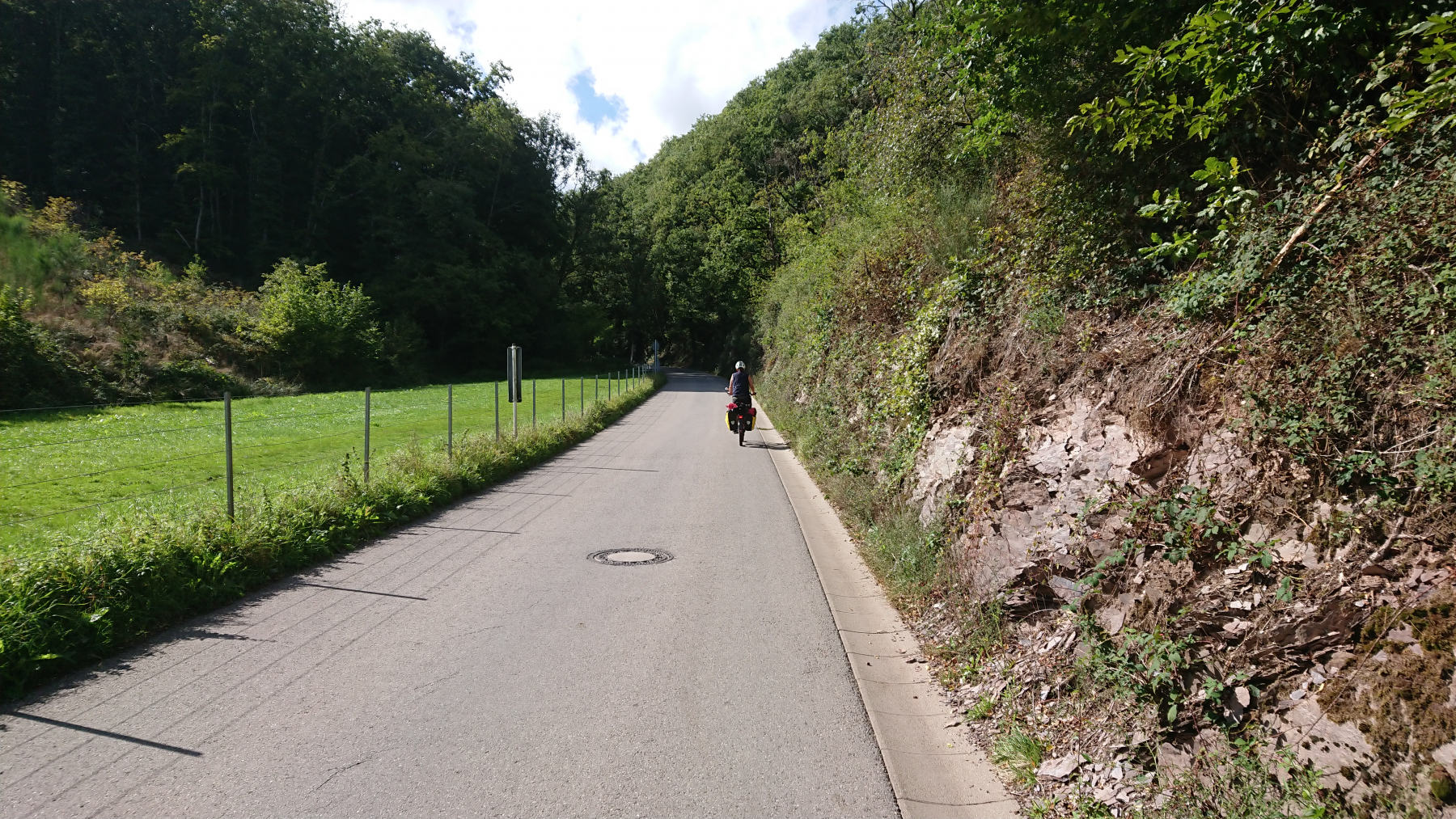 Aber schon bald zeigen sich wieder blaue Lücken in der Wolkendecke und es wird auch wieder trockener, auch wenn die Straßen alle noch nass sind. Nach gut 15 km überqueren wird die Grenze zu Luxemburg: