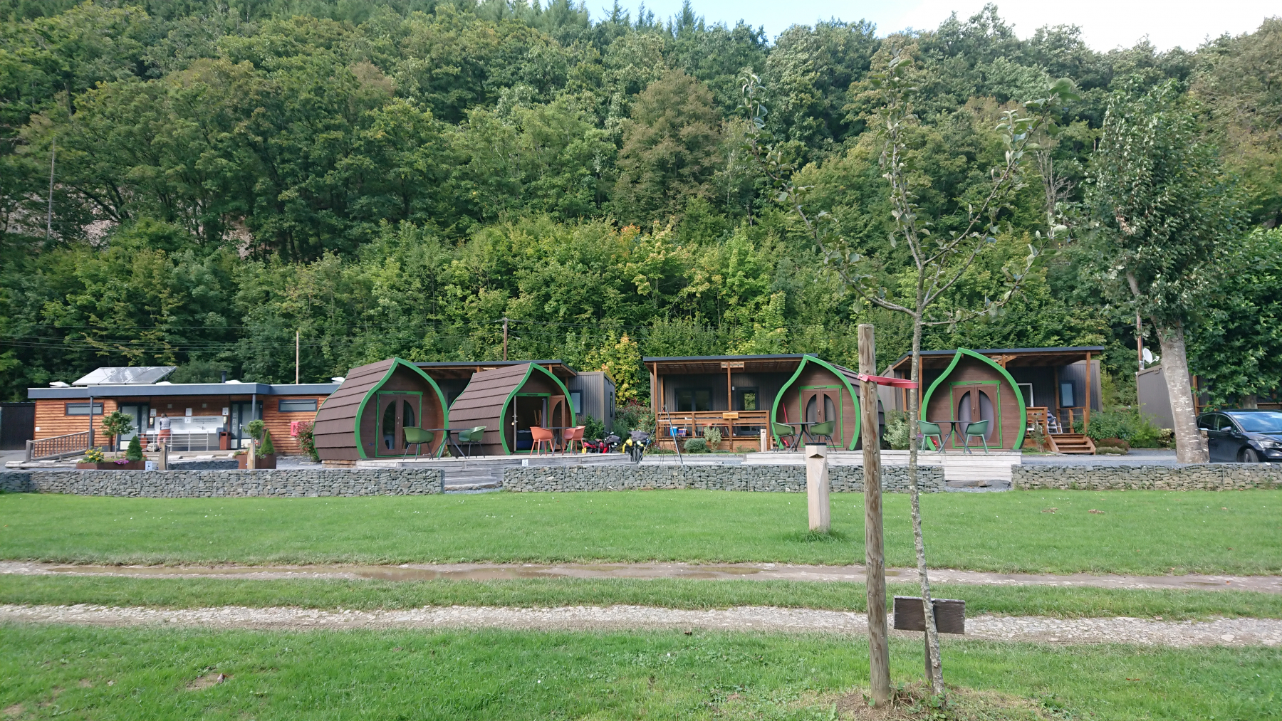 Aber unser Ziel ist auch so gut wie erreicht. Wir haben ein Fass auf einem Campingplatz gebucht. Alles tippi toppi, den Platz kann man empfehlen, das Fass hat sogar einen Kühlschrank, Geschirr und Geschirrhandtuch und Spüli.
