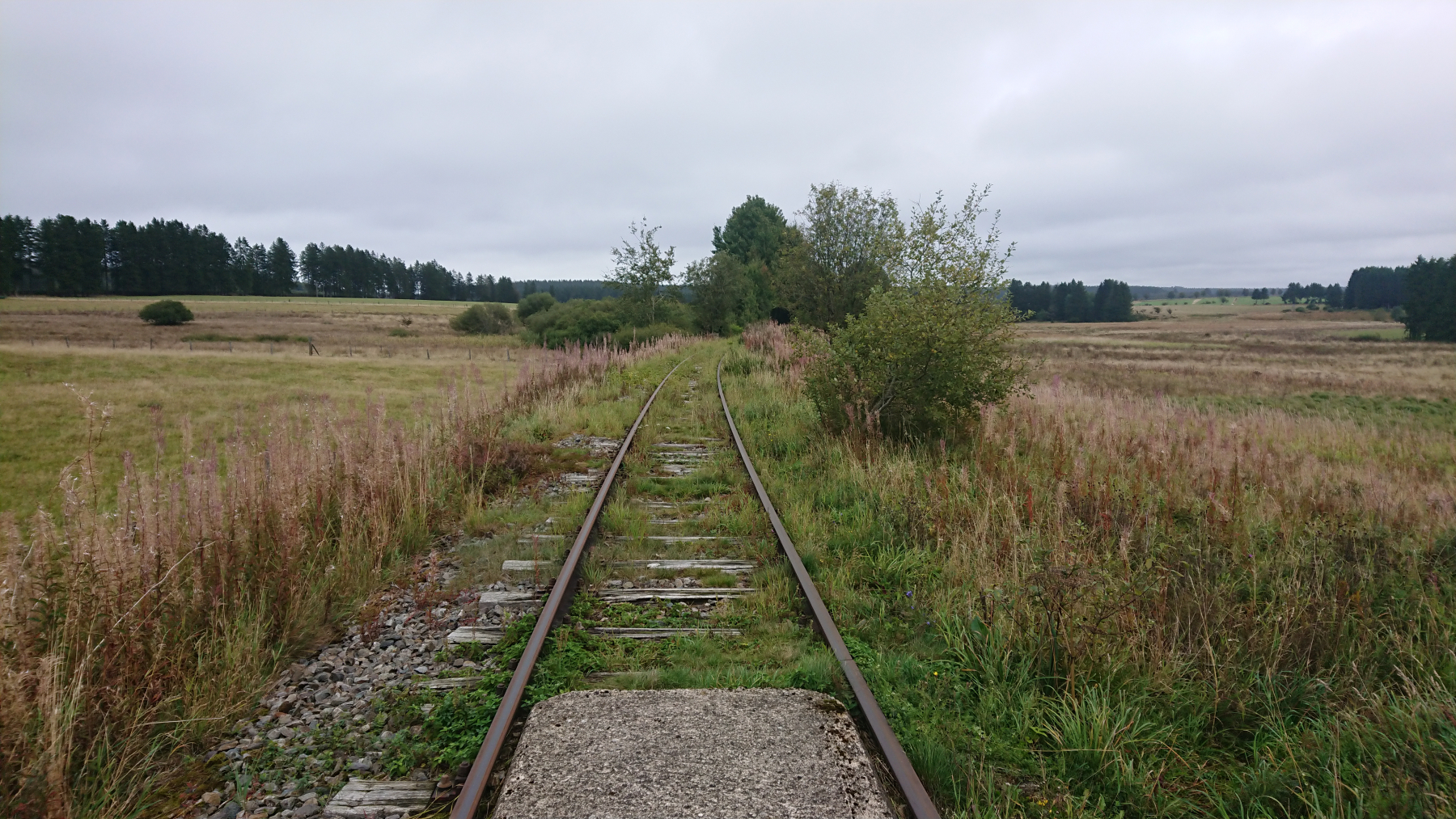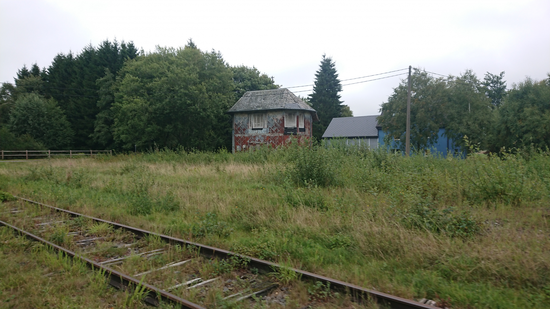 ein paar km weiter westlich entpringt dann die Rur. Und immer wieder begegnen wir den stummen Zeugen der gealttätigen Vergangenheit am Bahndamm. z.B. das Wachgebäude PD25.