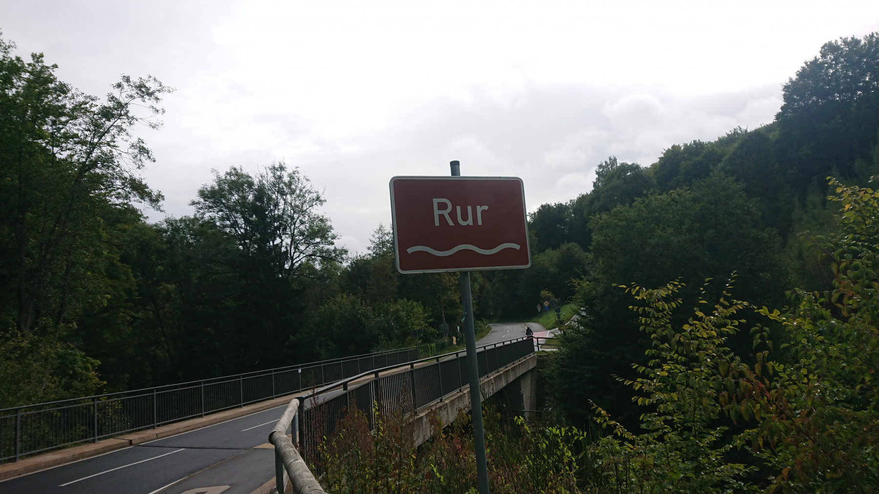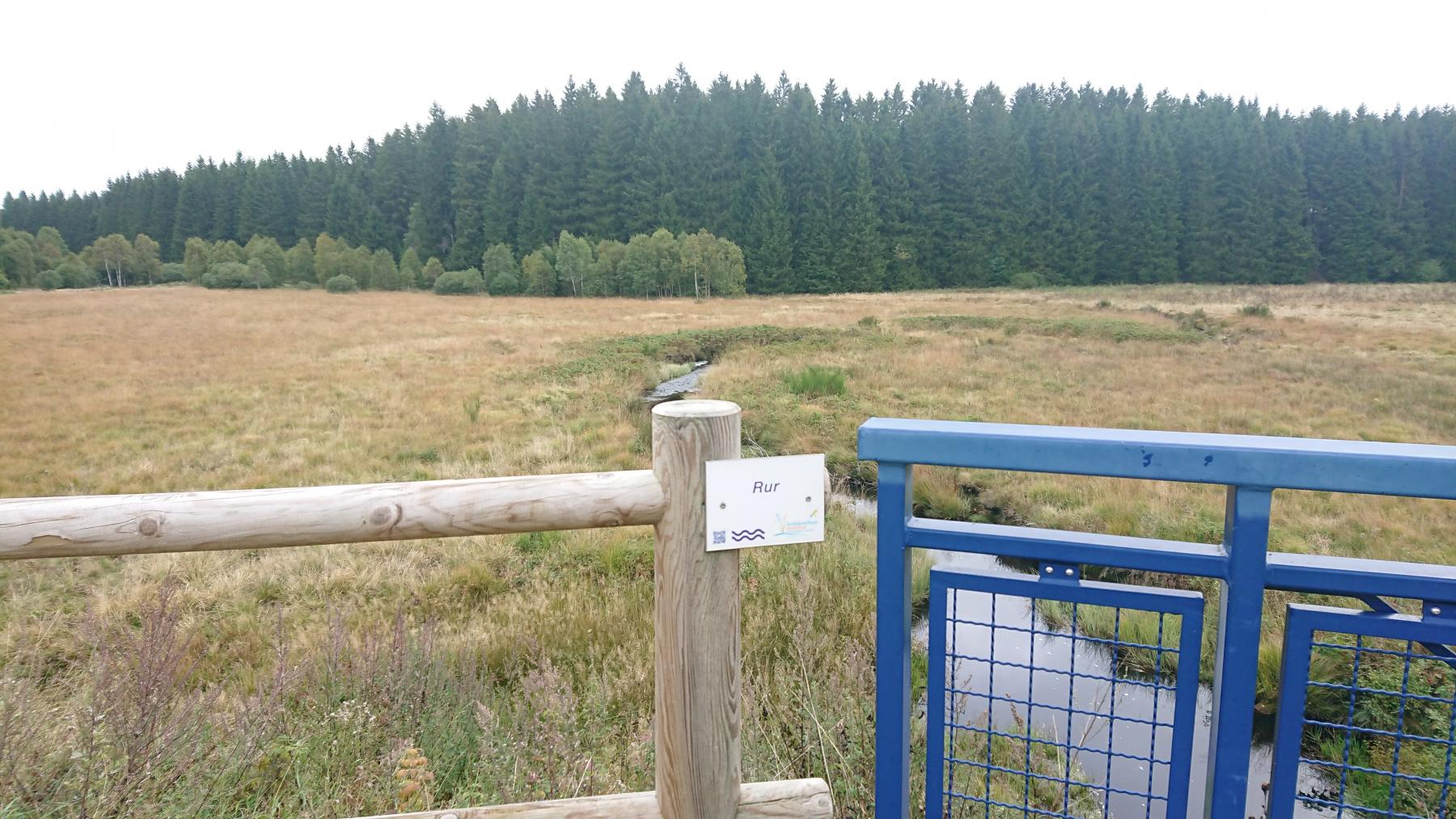 Die beiden Quellflüsse der Rur überqueren wir fast ohne es zu merken. Ein kleines Schild an einem der Bäche weist uns auf die Rur hin, die hier noch ein kleiner Bach ist.