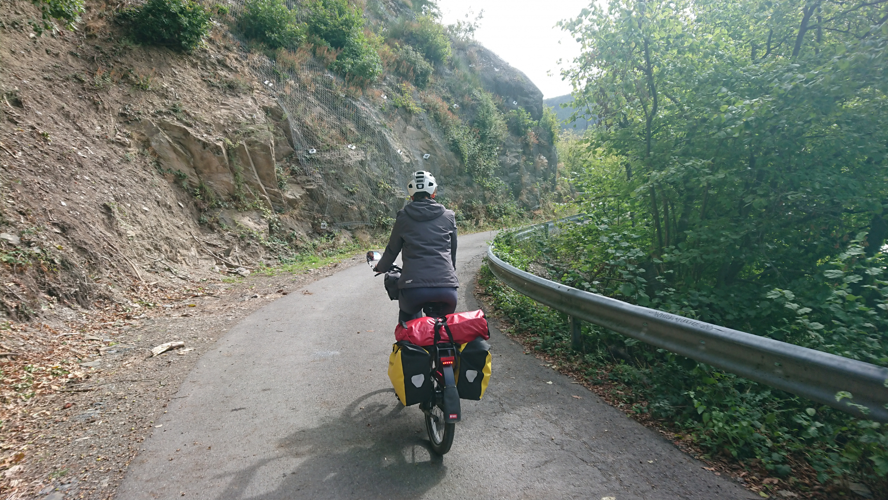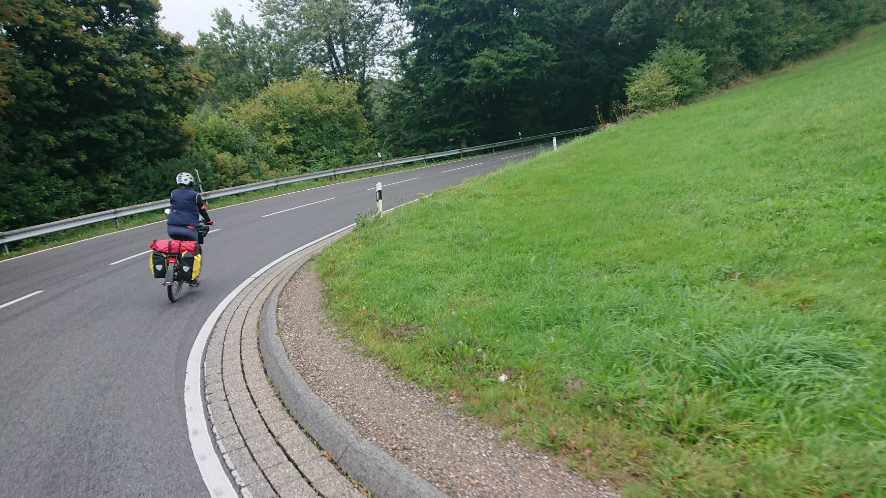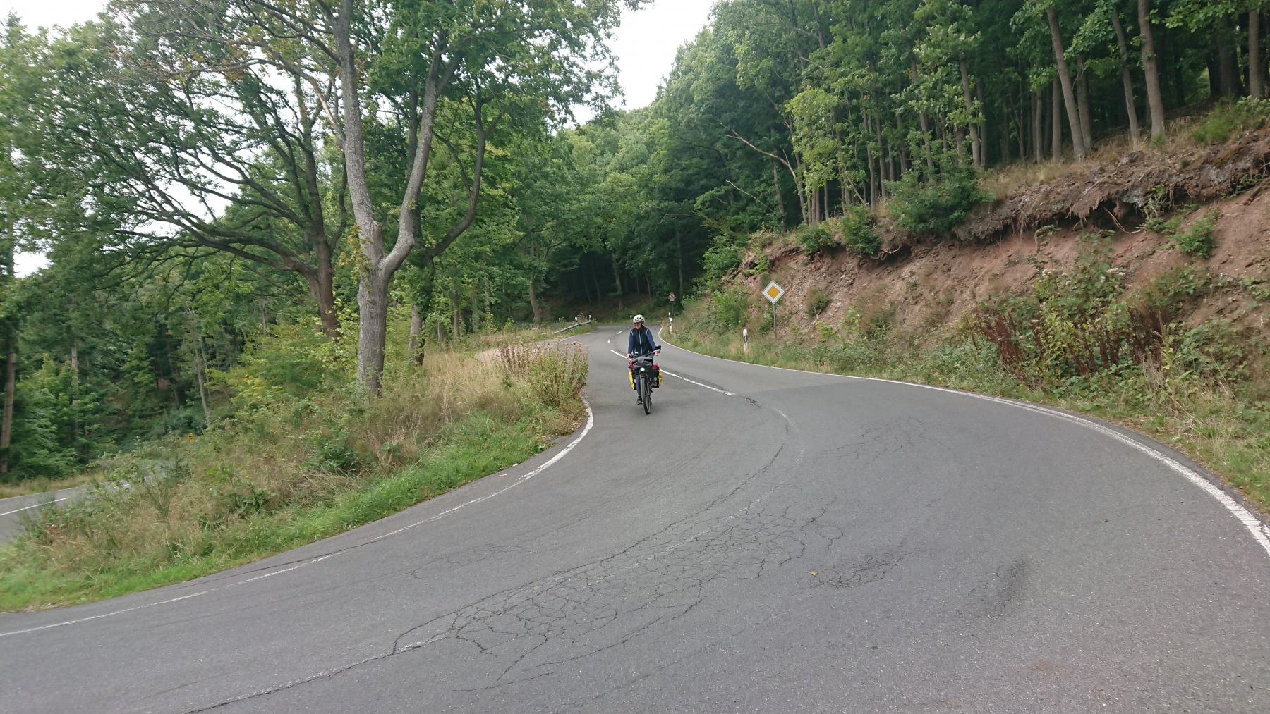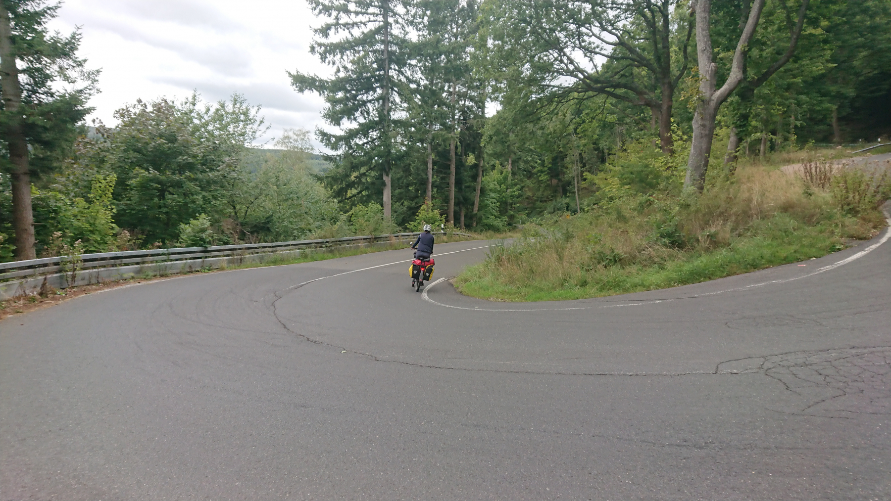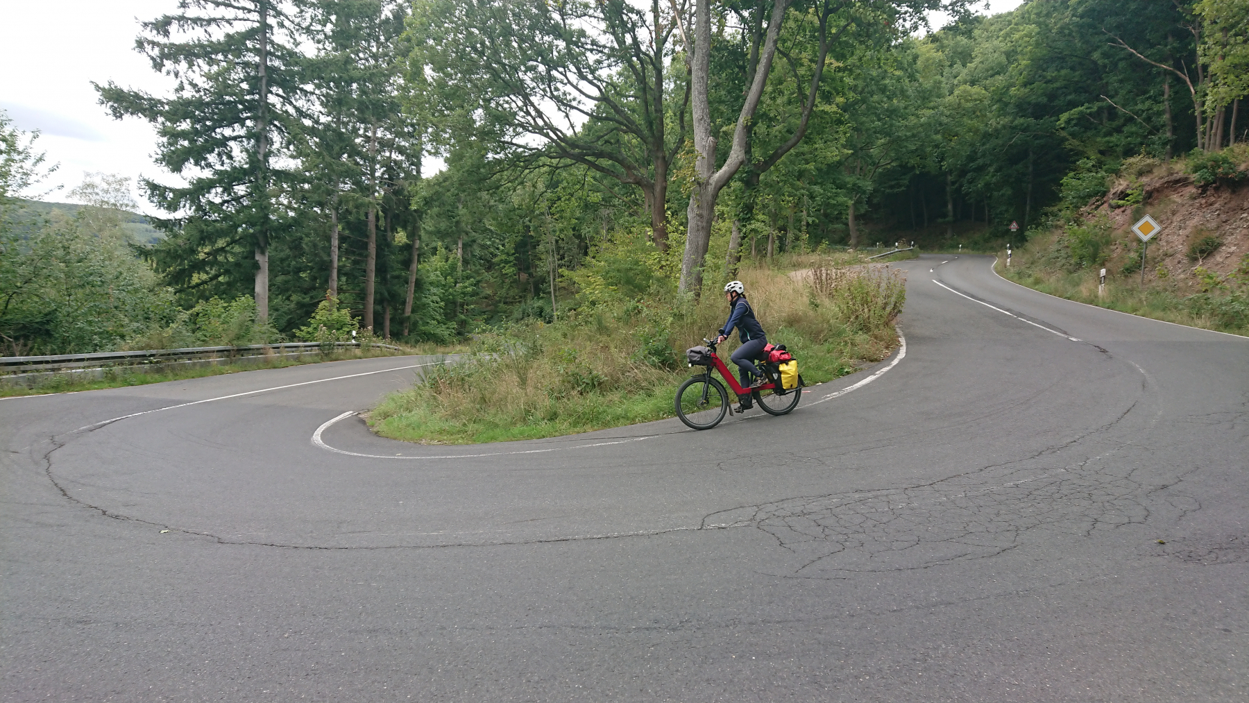 Die Abfahrt ist dann wieder eine Herausforderung an unsere Bremsen und an unser Vertrauen in unsere Bremsen. Ich lasse es mal rollen und bin schnell bei dem Gefälle von mehr als 12% auf über 50km/h und dann kommt die nächste Kurve. Bremmmmmmmmmmmsssssssssen