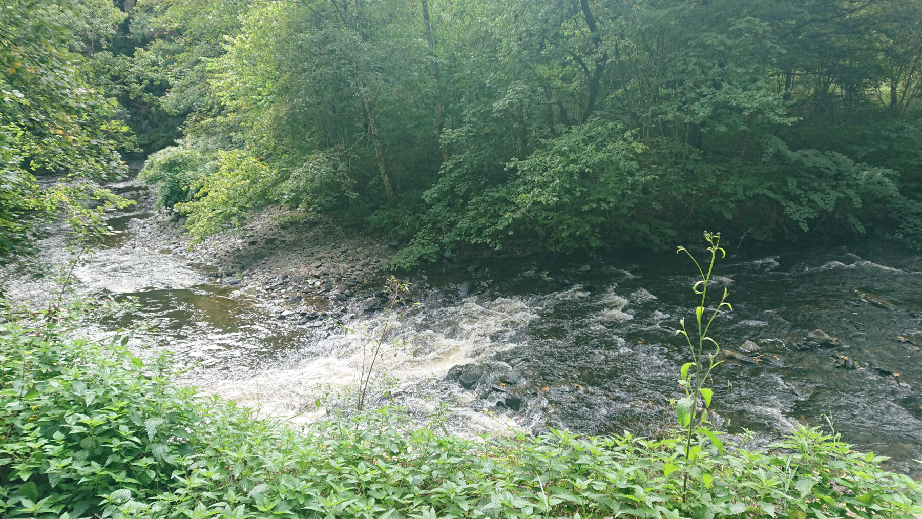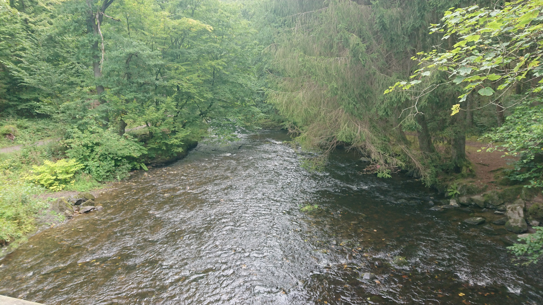 Entsprechend schnell sind wir wieder aus Monschau hinaus und fahren an der Ruhr, die hier noch wild und plätschernd zu Tal fließt.