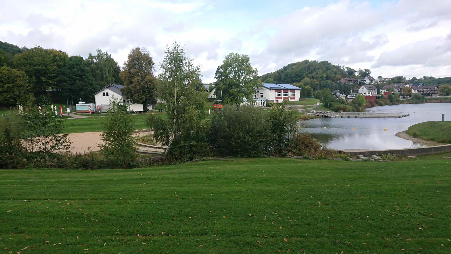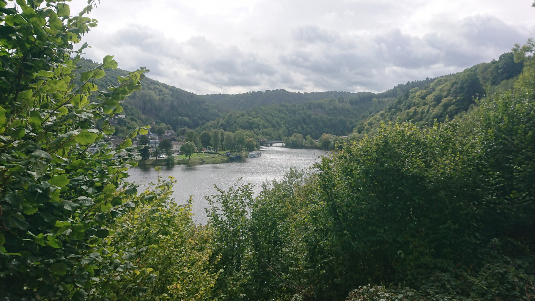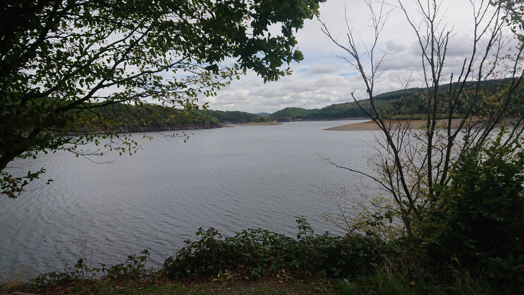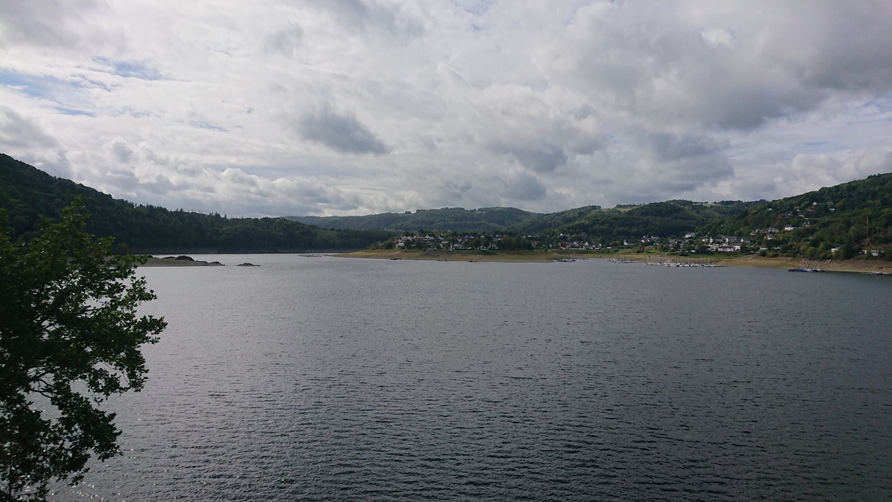 Der Radweg am Rursee ist gut zu fahren, hin und wieder mal durch einen Ort, aber meisten fahren wir auf einer kleinen Straße dicht am Stausee entlang