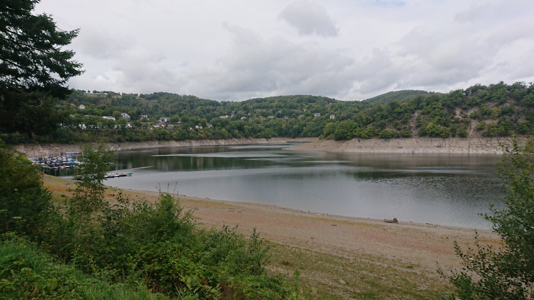 Währen der Obersee noch einigermaßen gefüllt ist, ist der Pegel im Rursee sehr niedrig.