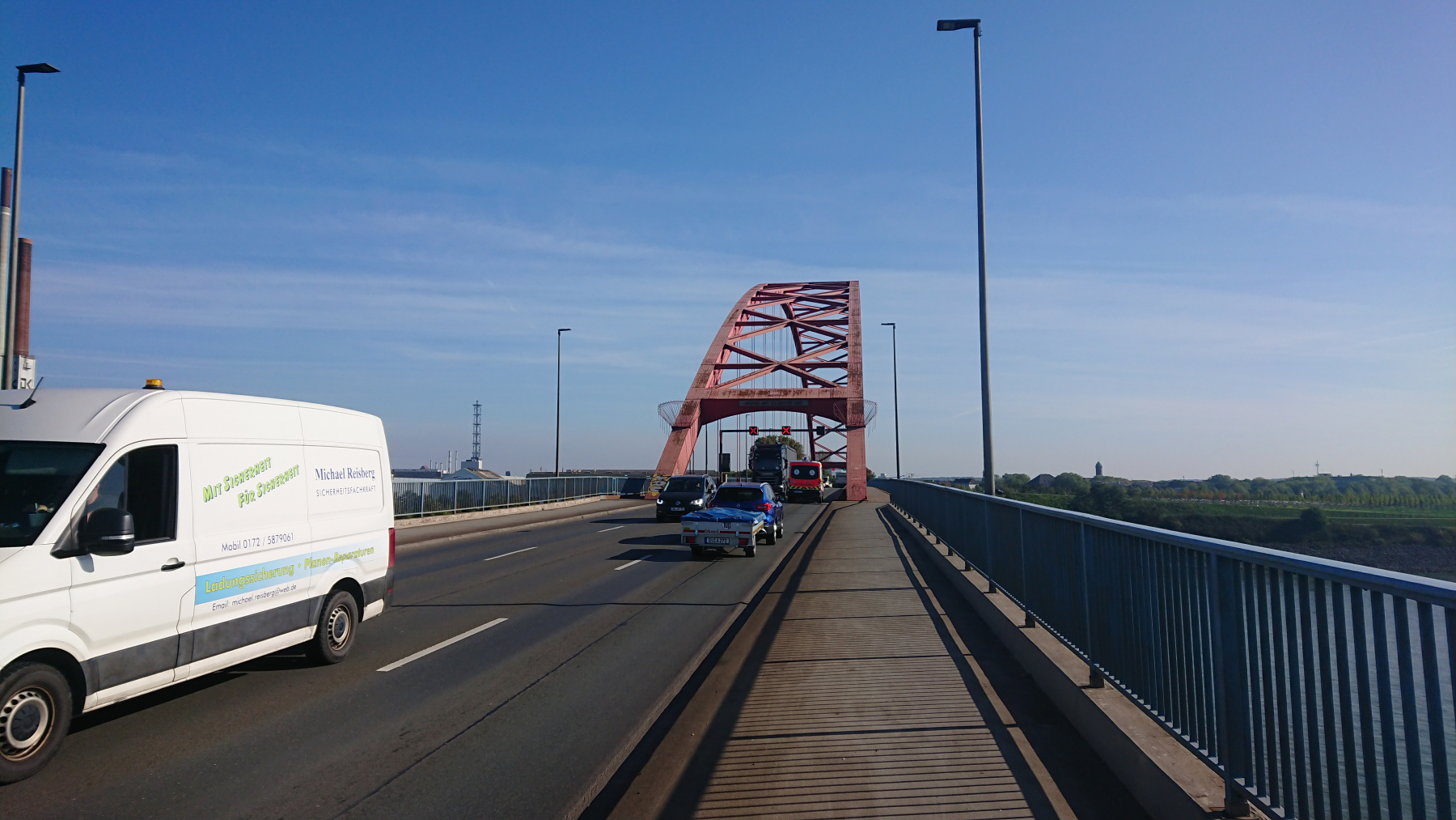 Über die Duisburger Rheinbrücke welchseln wir auf das rechte Rheinufer.