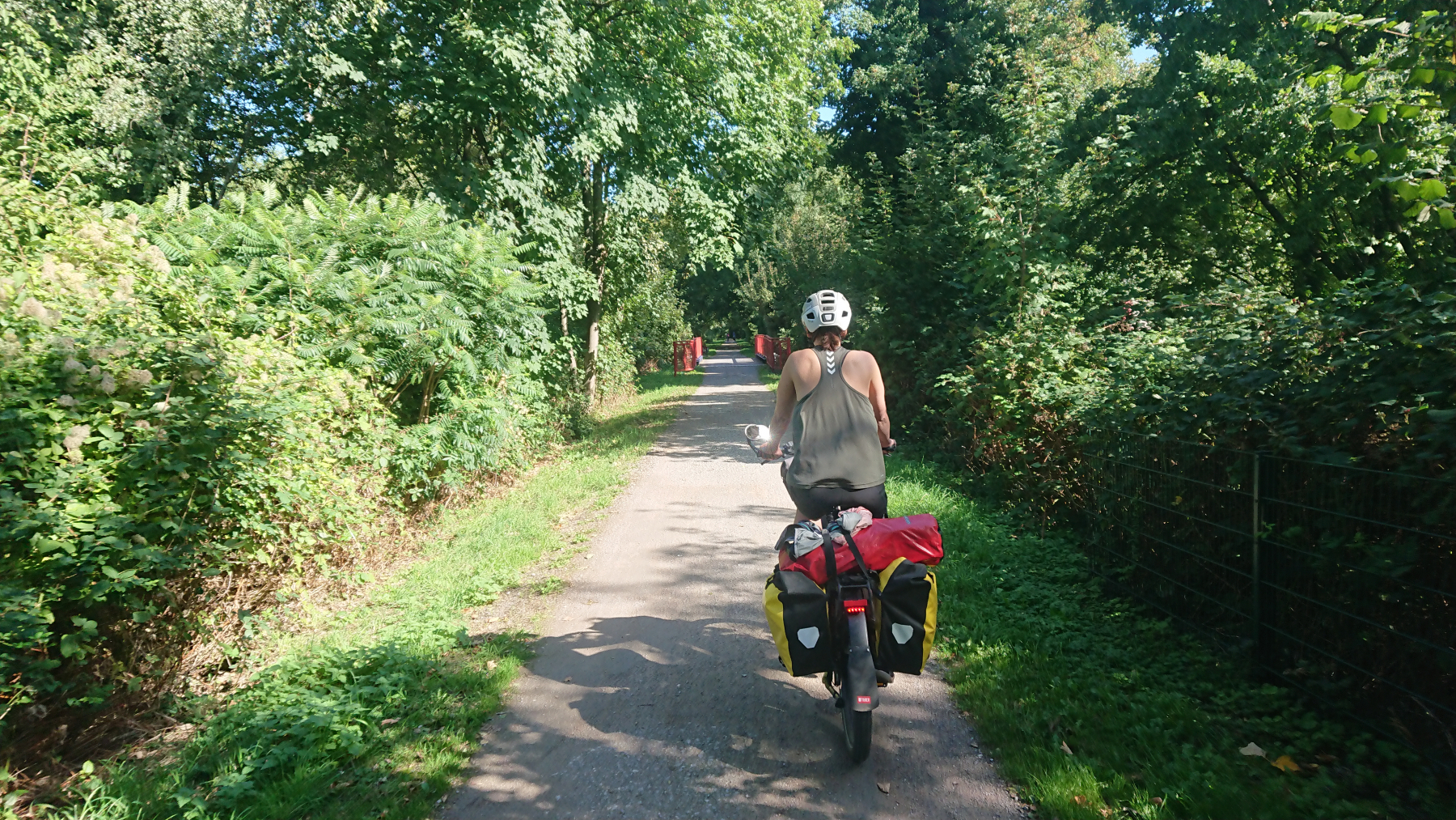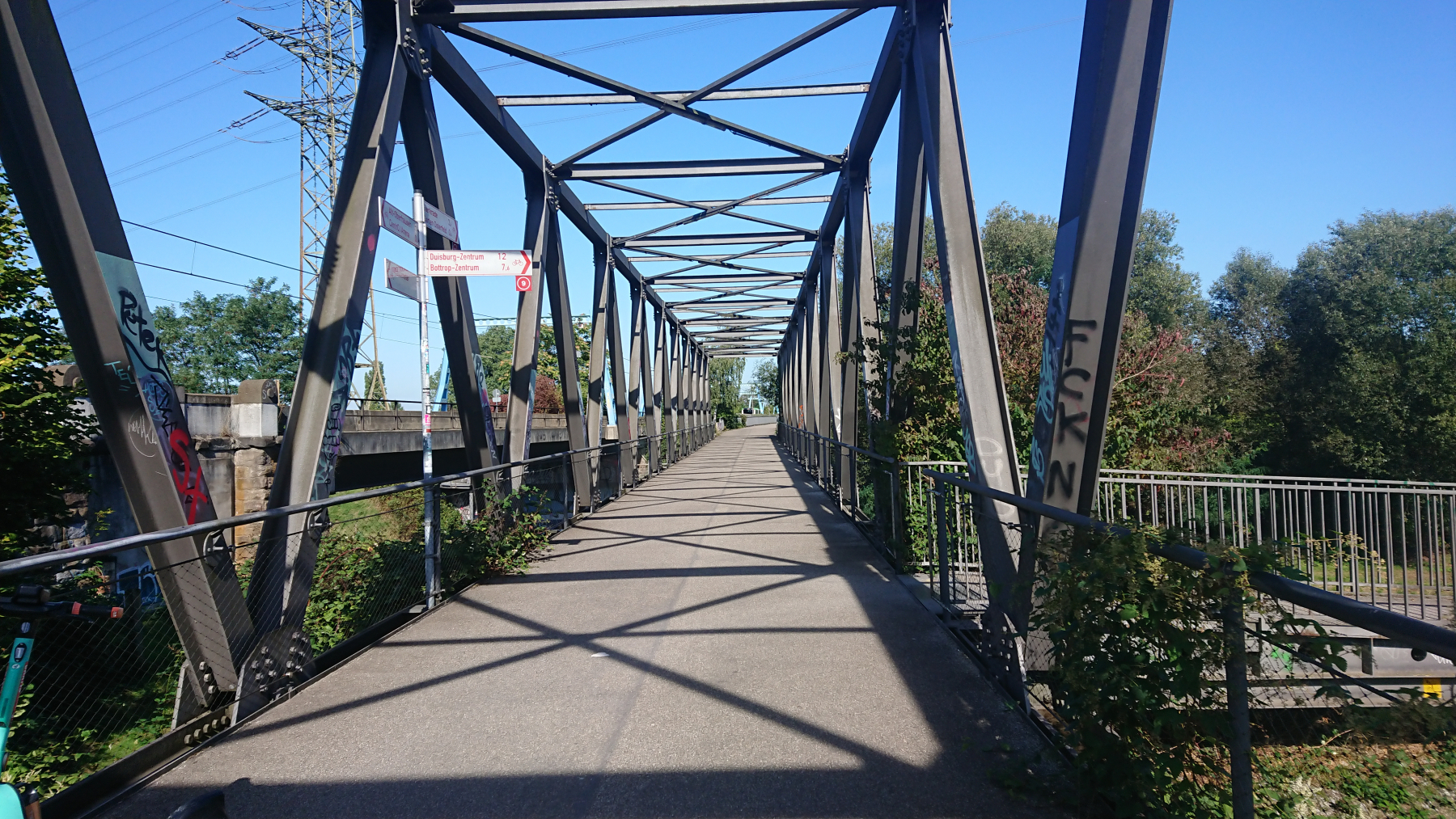 Die Ruhr (diesmal mit „h“) ist dann schnell erreicht. Kurz mal durchatmen, denn mit Duisburg-Meidrich und Oberhausen gilt es, weitere urbanes Gebiet zu durchqueren. Über kleine Straßen und viele Kreuzungen, an denen wir warten müssen, schlängeln wir und durch die Straßen und Wohngebiete, vorbei am Hauptbahnhof Oberhausen. Am Bahnhof „Neue Mitte“ machen wir Pause.