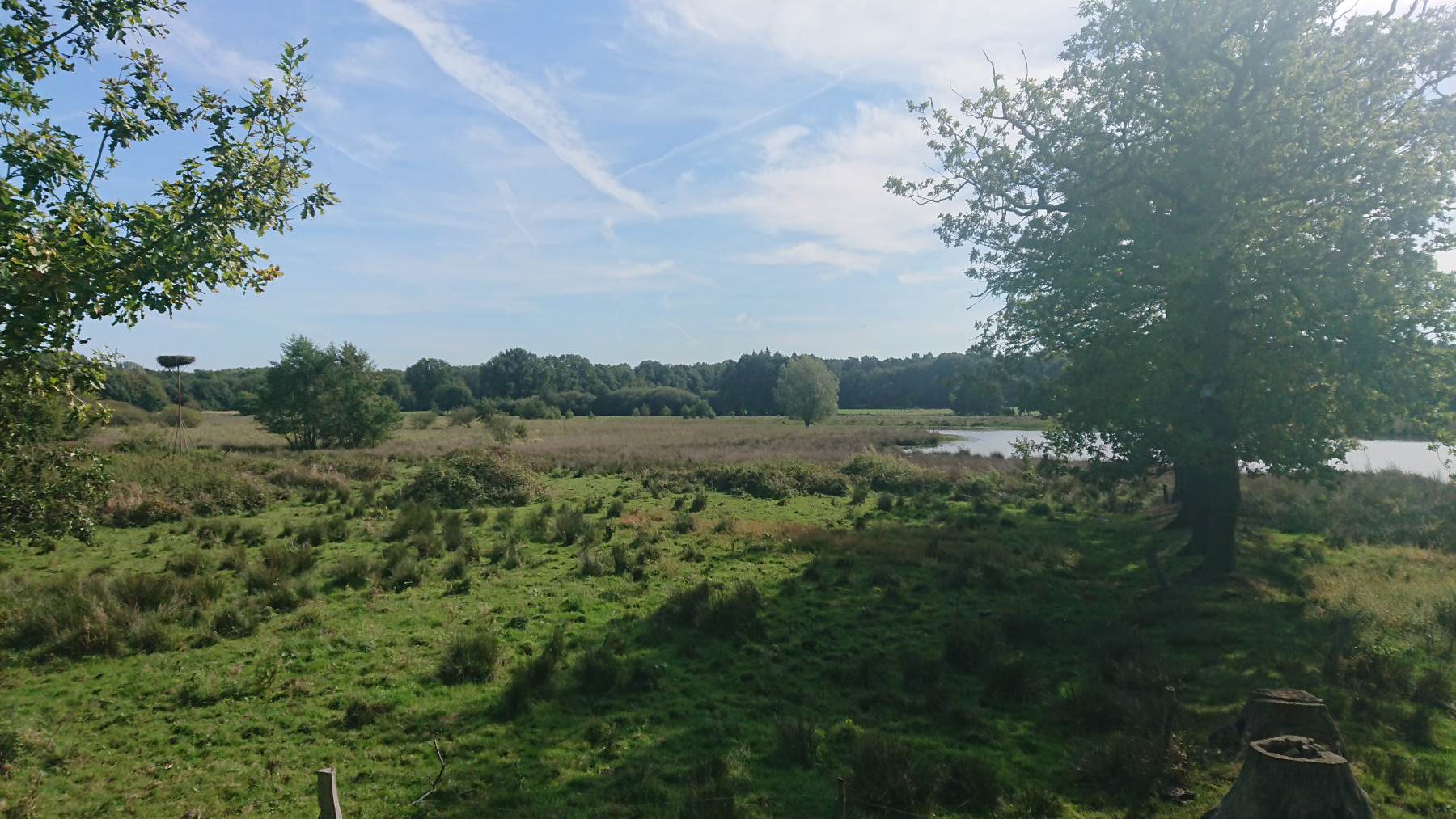 Unser nächster Haltepunkt ist der Hervester Bruch. Von einer kleine Aussichtsplattform hat man einen tollen Blick über das Gebiet, aber im September sehen wir hier keinen Storch mehr, die Störche sind wohl schon auf Winterurlaub in Spanien oder Marokko.