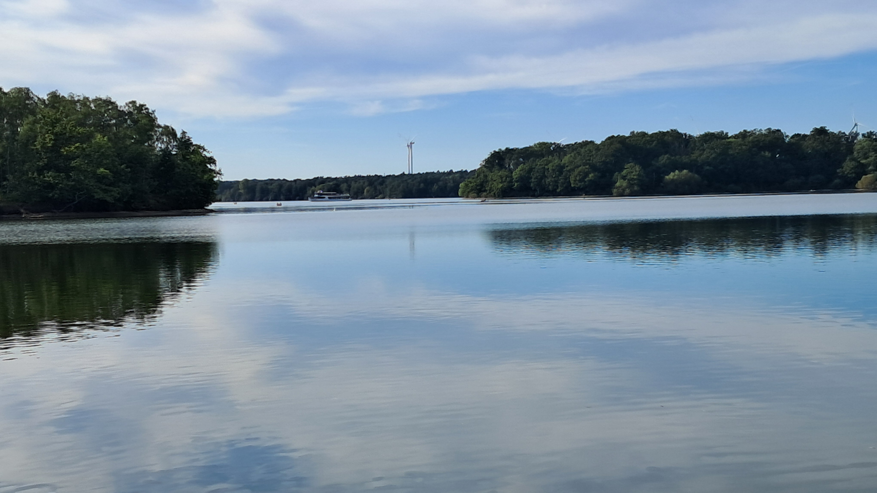 Einen kleinen Mittagssnack und ein Eis in Haltern, dann geht es weiter an den See. Aber dieser See ist anders. Fast nirgendwo kann man bis an das Ufer des Halternsees. Nur an wenigen Stellen kommt man bis an das Wasser. Überall Hinweisschilder : „Betreten verboten, Trinkwassergewinnung“ Nur an wenigen zugelassenen Stellen darf man Baden oder sich an den See setzen.