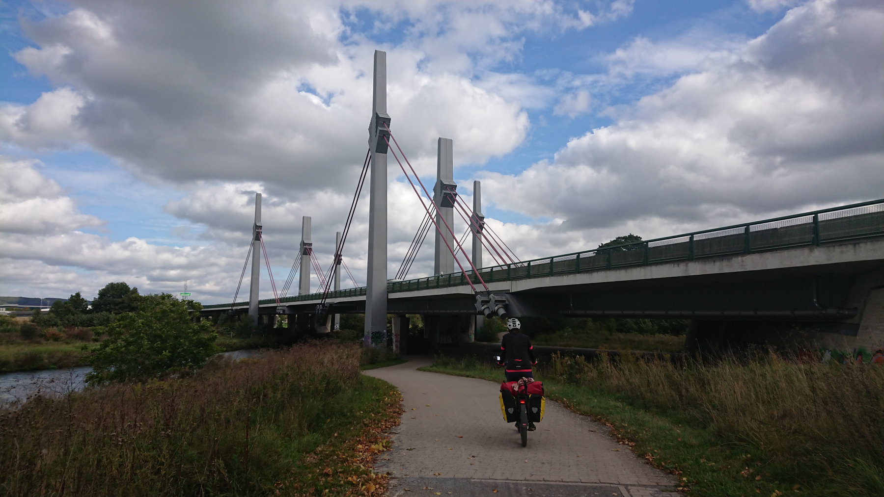 Da uns nichts mehr in der DJH Tecklenburg hält, brechen wir früh nach einem guten Frühstück (am Sonntag mit Rührei) wieder auf. Ziel heute : Porta Westfalica. Die Tour führt über Osnabrück, Melle und Bad Oeynhause an die Weser. Im Grund fahren wir nahezu parallel zur A30 nach Osten.