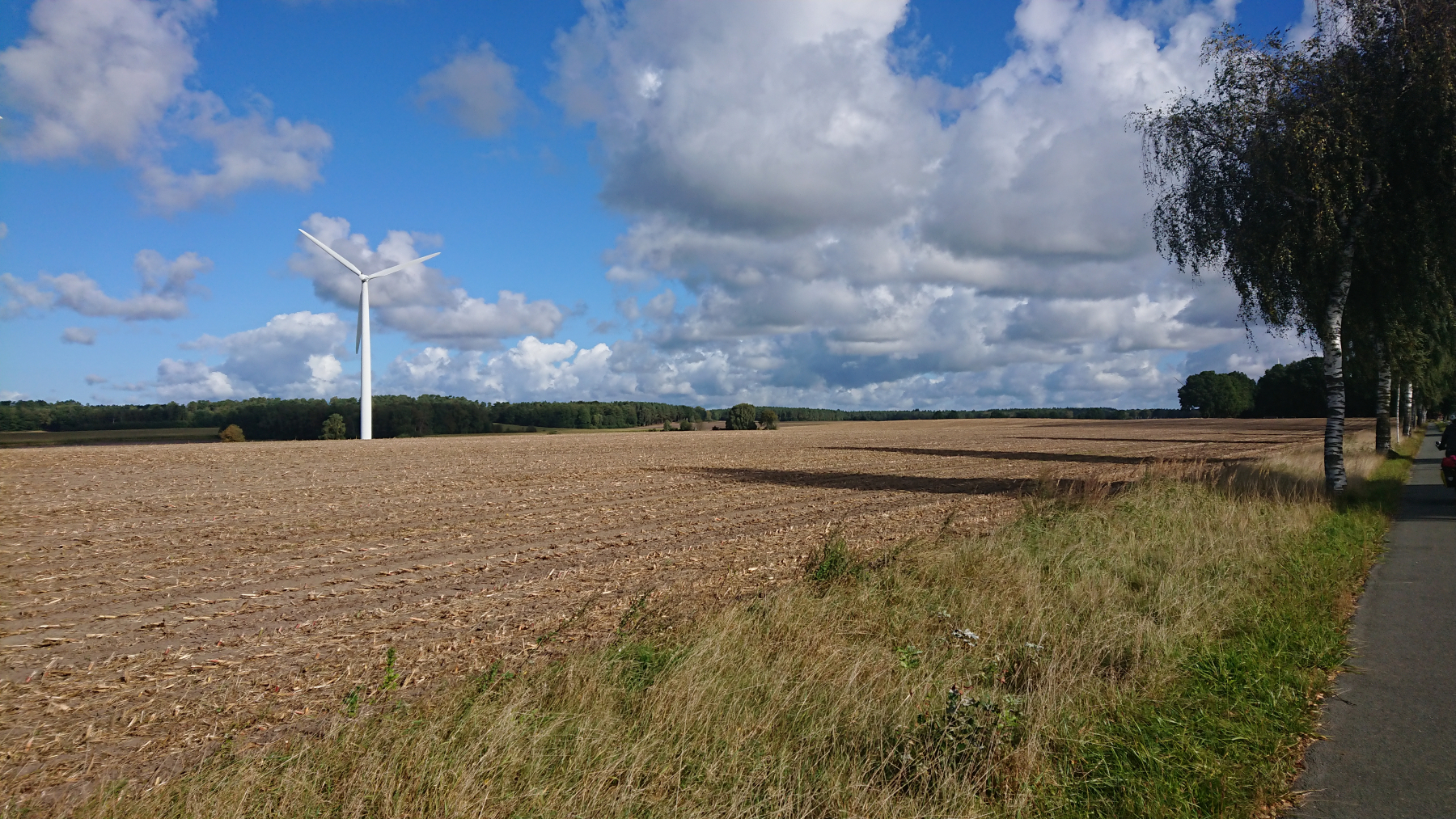 Für heute stehen 105 km mit Nachladen in Bispingen auf dem Plan. Wärmer als gestern morgen ist es auch nicht, eher noch kälter. Das Thermometer zeigt grade mal 7 °C. Schon dick eingepackt fahren wir los. Und bis zum Nachladen in Bispingen wird uns auch nicht richtig warm, das Thermometer klettert nur so auch 12-13 °C. Um 11:00 Uhr sind dan so etwa 15 °C erreicht und wir können die dicken Jacken und langen Hosen gegen Weste und kurze Hose tausche.