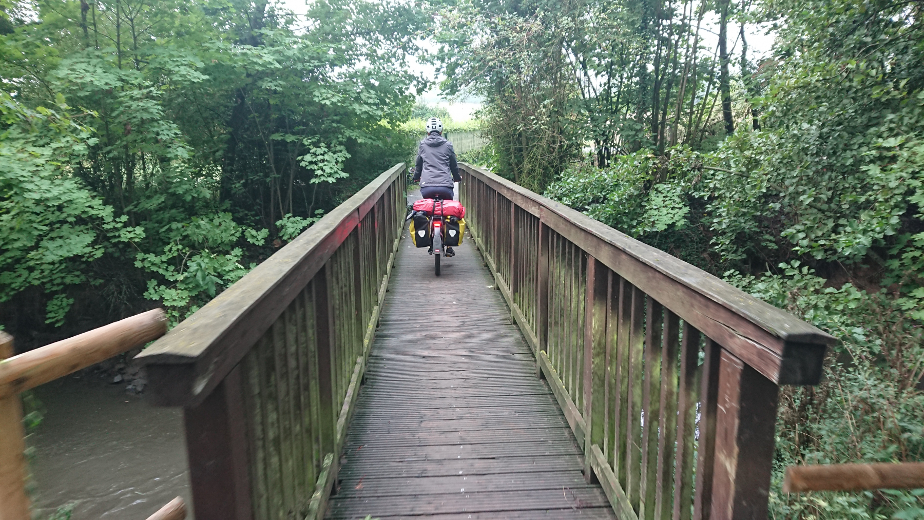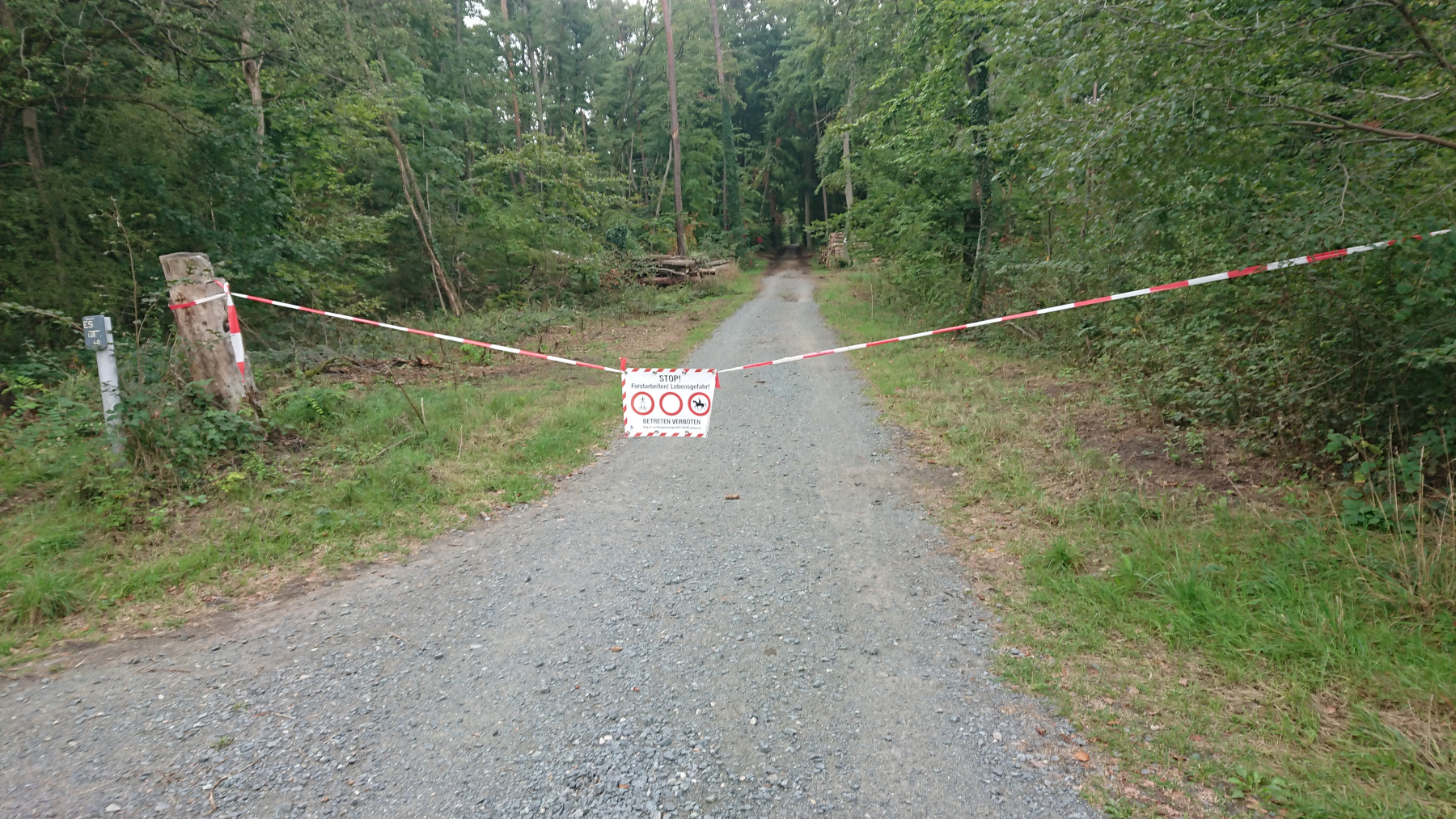 Endlich sind wir raus aus Darmstadt. Doch dann ist unser Wege wegen Baumfällung gesperrt und wir hören die Motorsägen jaulen und das Holz knacken, wenn der Baum fällt. Für uns heißt das Umweg – Ausschilderung Fehlanzeige.