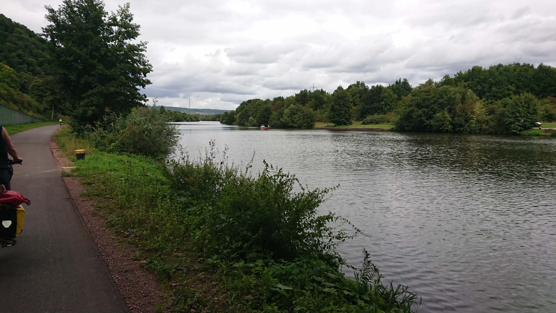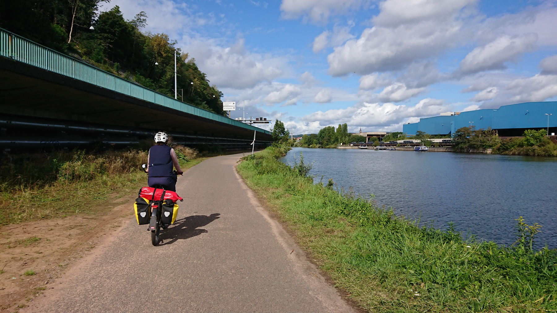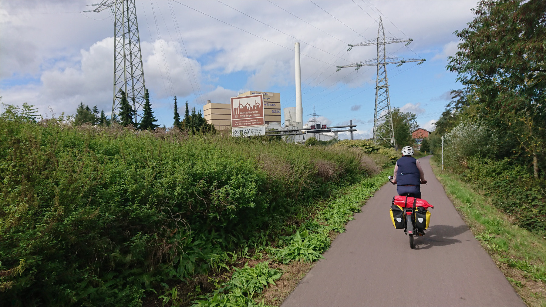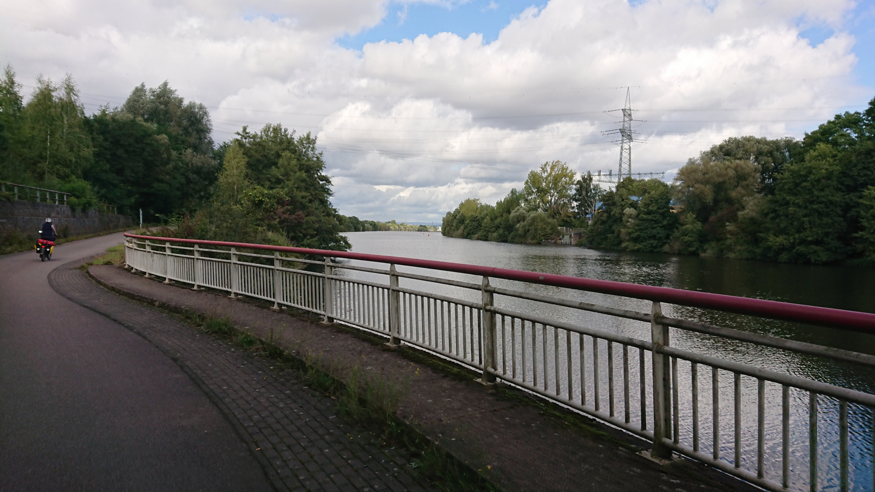 Und weiter geht es. Auf der rechten Saarseite ist immer noch viel Stahlindustrie, bei uns wird es schon wieder grüner. An der Saar entlang zu fahren ist wenig aufregend, wir kommen schnell voran, bis uns eine Sperrung des Radwegs zu einer Umleitung abseits des Flusses zwingt.