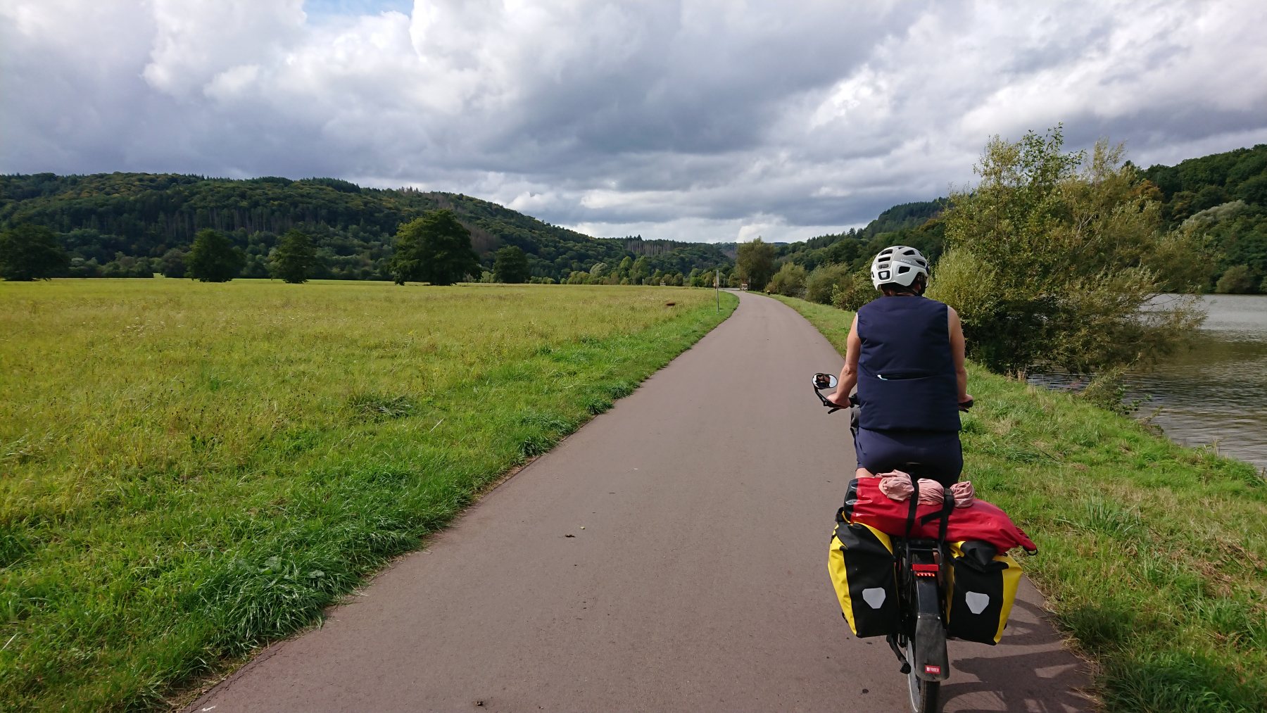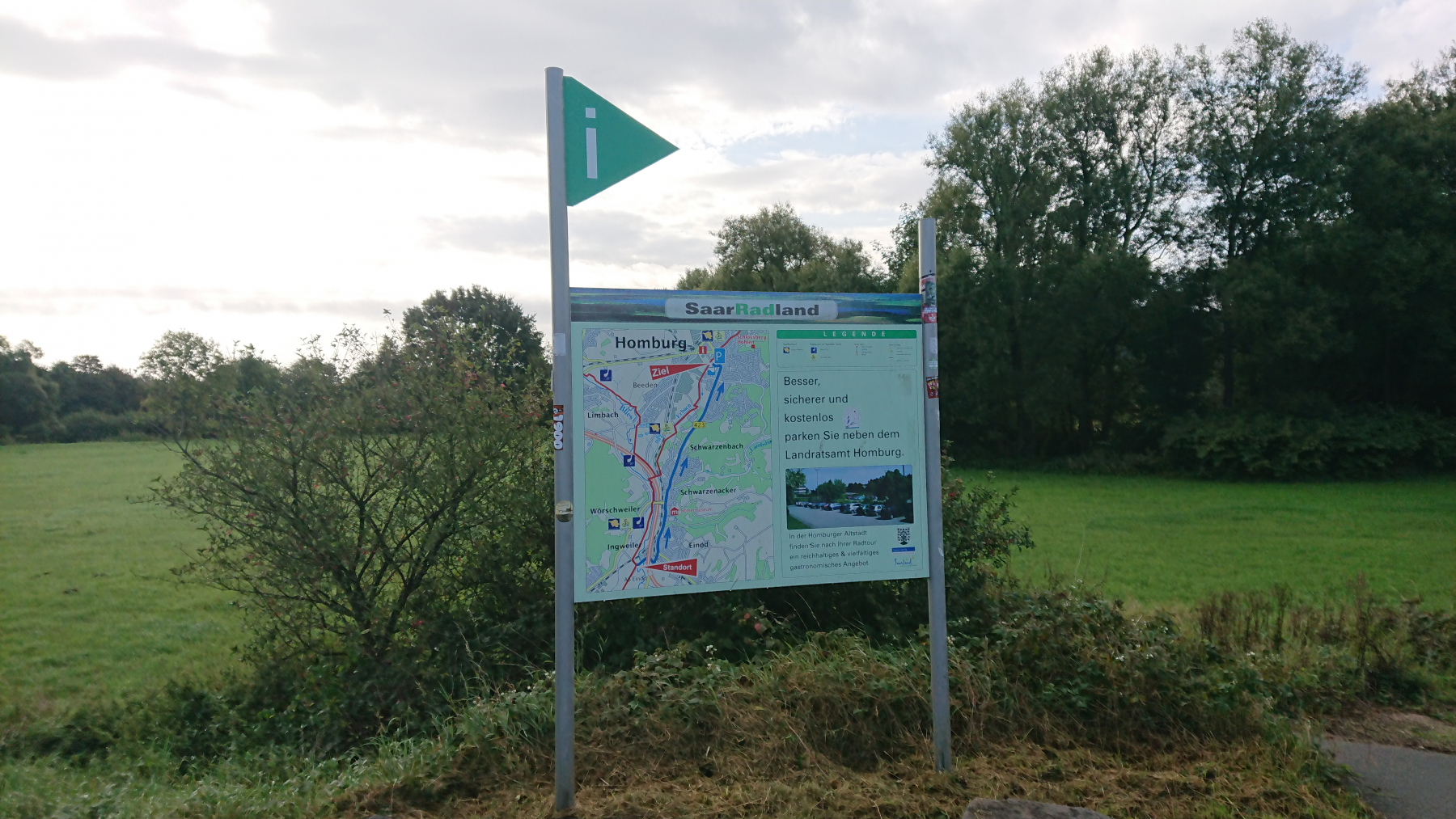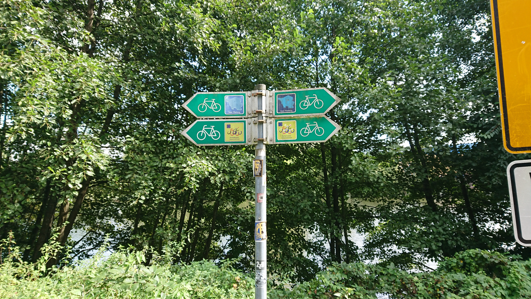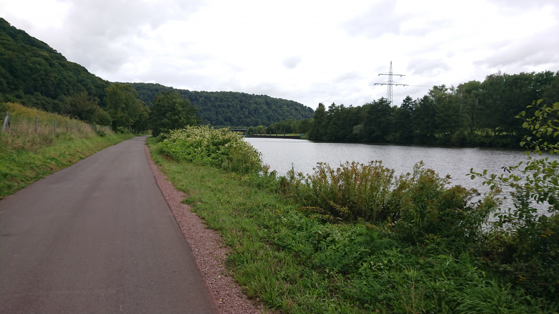 Und weiter geht es. Auf der rechten Saarseite ist immer noch viel Stahlindustrie, bei uns wird es schon wieder grüner. An der Saar entlang zu fahren ist wenig aufregend, wir kommen schnell voran, bis uns eine Sperrung des Radwegs zu einer Umleitung abseits des Flusses zwingt.