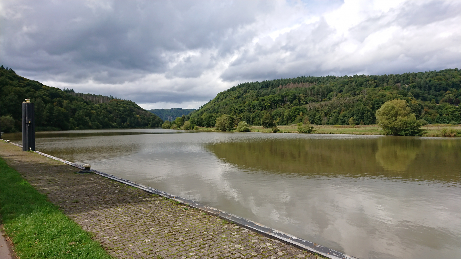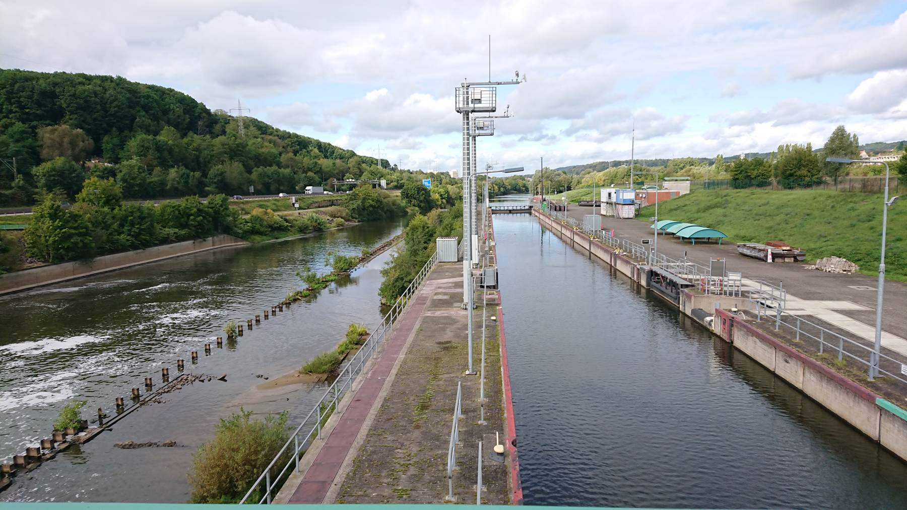 Die Saar wird an vielen Stellen aufgestaut. Nur dadurch ist sie schiffbar aber im Grunde sind das nur aneinandergereihte Stauseen.
