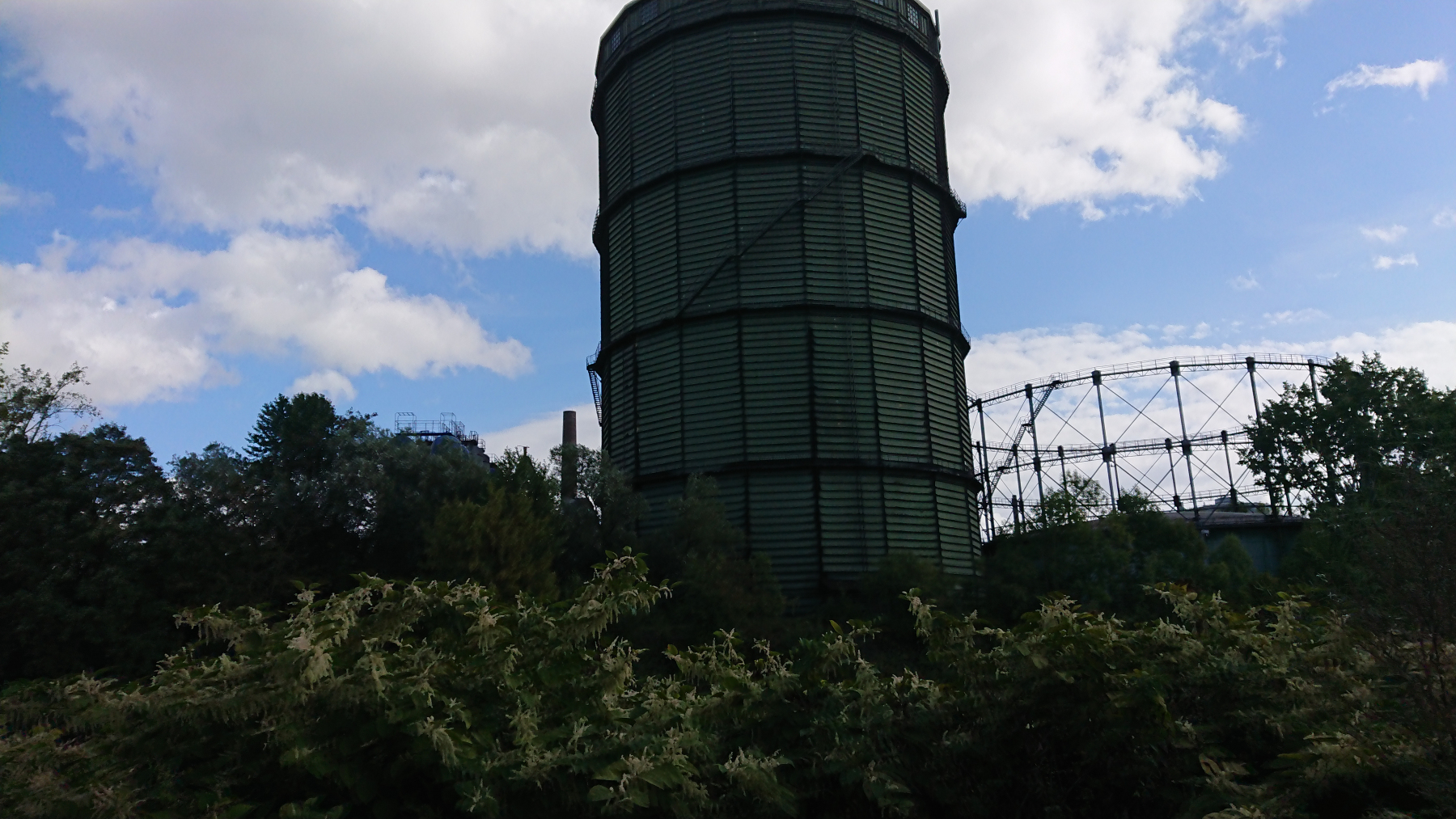 An der Völklinger Hütte sehen wir nur die im Vergleich zu heutigen Hüttenwerken niedrigen Schornsteine. Hier machen wir auch unsere erste Pause nach rund 52km, allerdings nicht auf der Seite auf der die alte Hütte sich befindet, sondern am Westufer.
