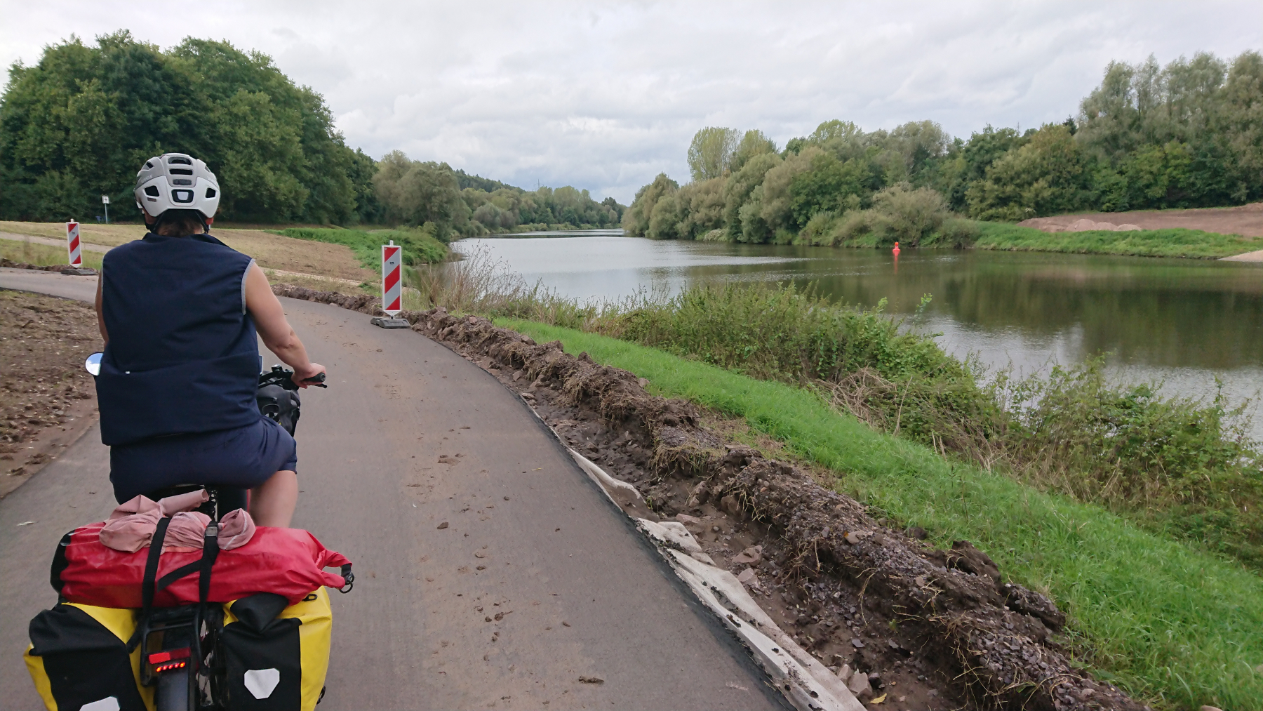 Anderswo ist der Radweg noch nicht wieder befahrbar und wir müssen zwischen Rehlingen und Mechern auf die nahe Straße ausweichen.