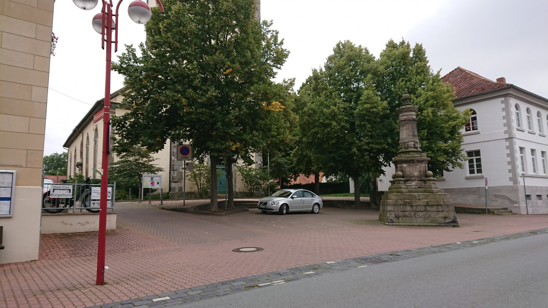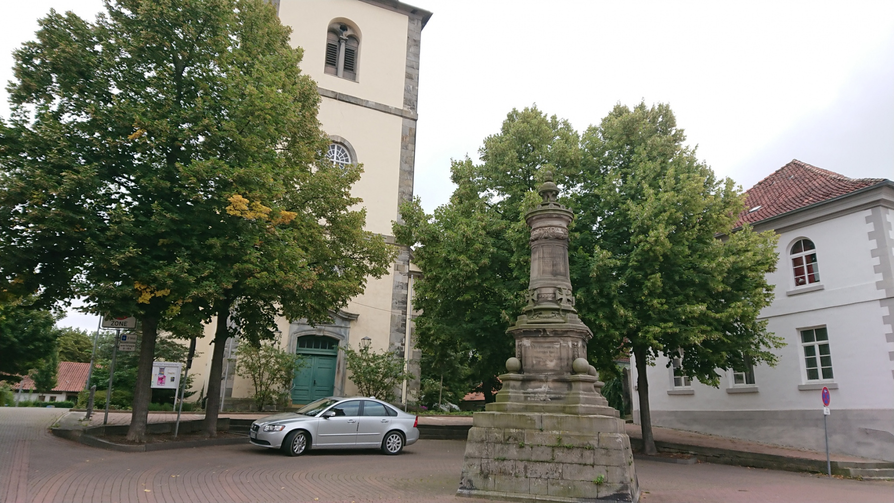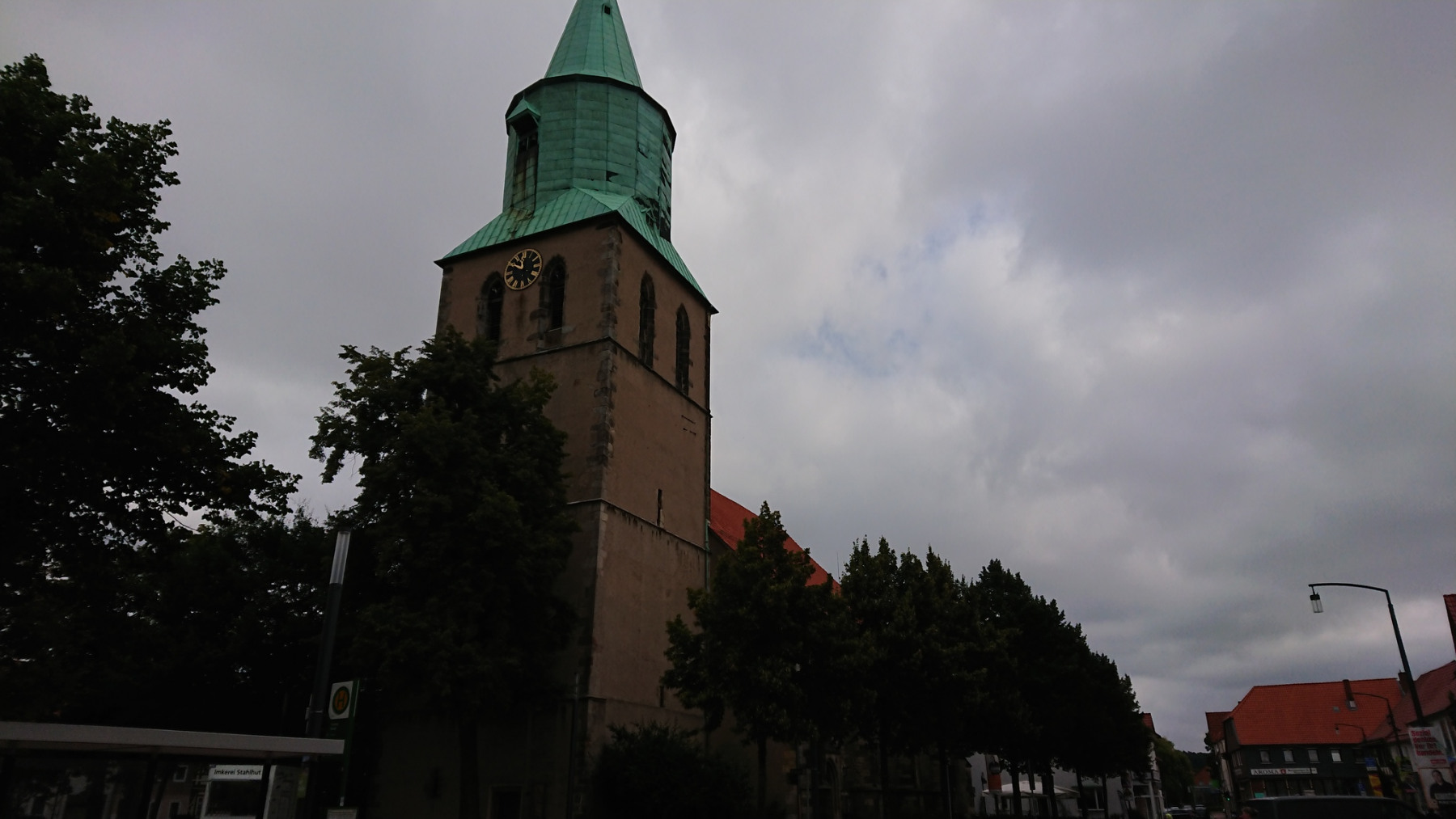 Unsere erste Pause heute machen wir nach rund 35km in Gronau auf dem Marktplatz direkt an der Kirche St. Matthäi im Zentrum des Ortes.
