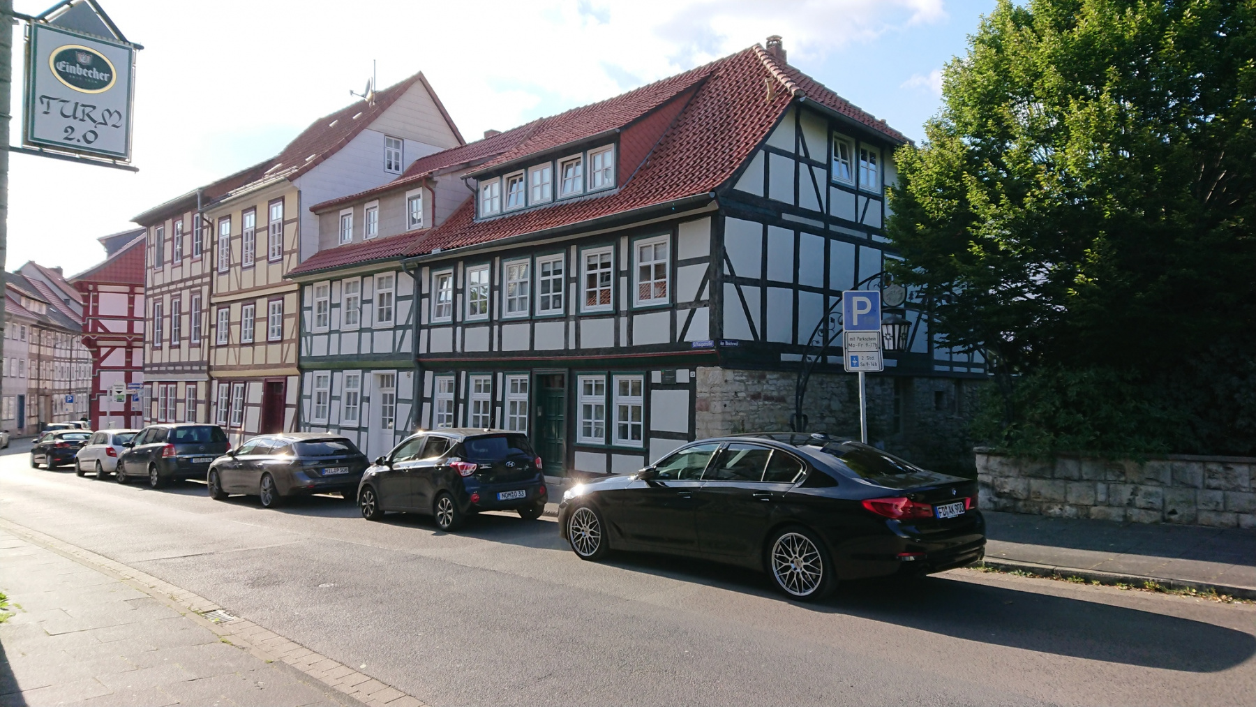 Über Einbeck und der Leineniederung Salzhelden gelangen wir nach Northeim. Unsere Ferienwohnung ist schnell gefunden und unsere Gastgeberin erwartet uns schon. Die Ferienwohnung ist so centrumsnah gelegen, dass wir zu Fuß am Abend in die Stadt gehen und uns umsehen können. Das Zentrum von Northeim besteht aus alten Fachwerkhäusern .
