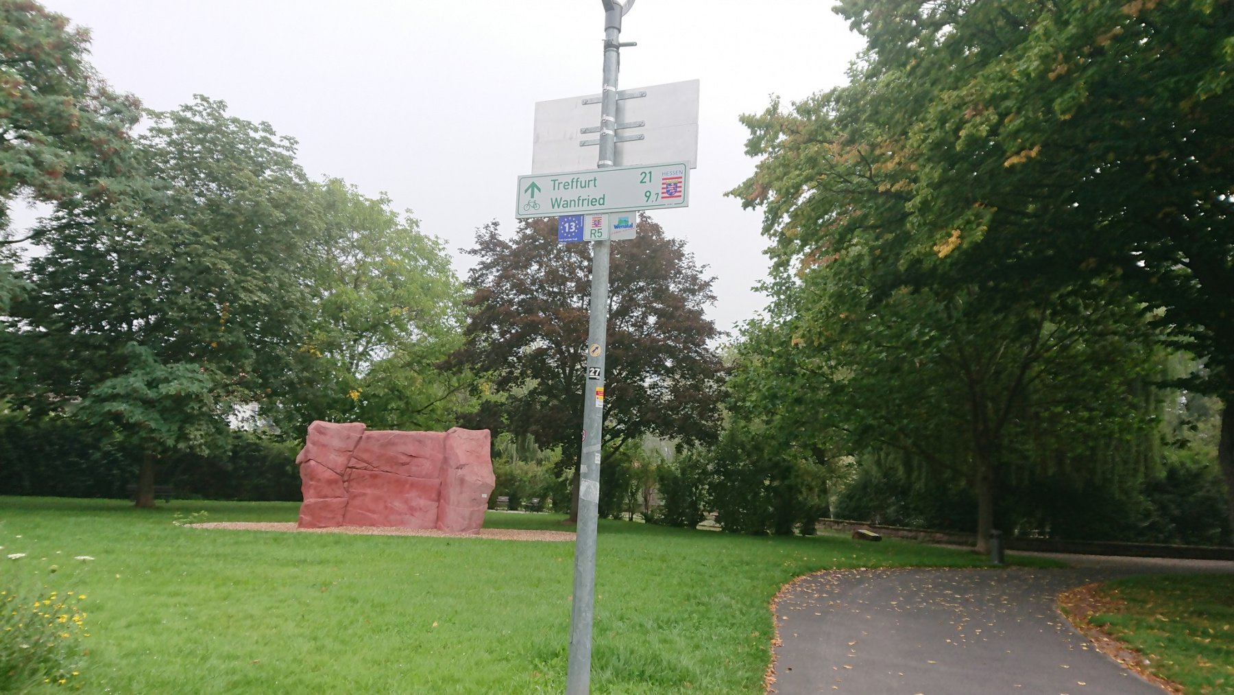 Mittag gibt es beim einzigen Imbiss in Herleshausen. Er ist der Beste sagen uns einige Passenten. Aber wenn es nur den einen gibt ? – Na ja, mehr als eine 3- erhält das Essen dort nicht von uns. Wir werden satt aber wirklich gut schmeckt es nicht. Bisher haben wir am heutigen Tag knapp 65 km zurückgelegt. Bis zu unserem Ziel in Obersuhl sind es noch knapp 20 km.
