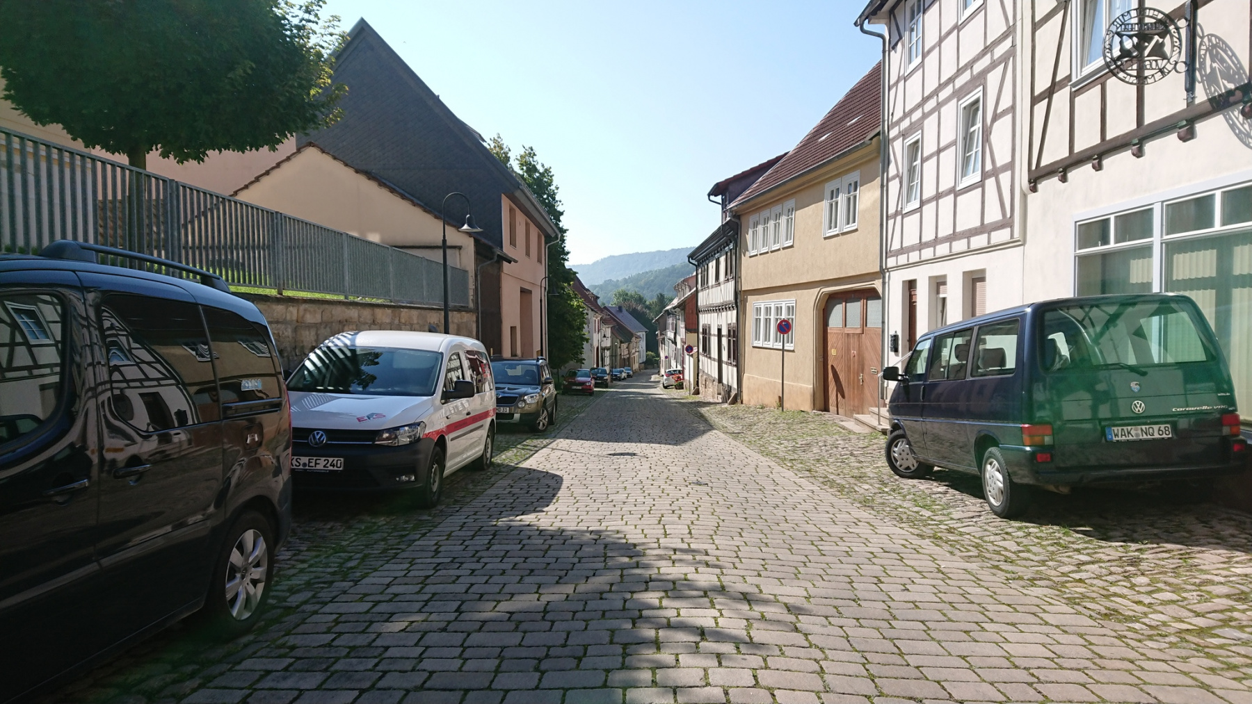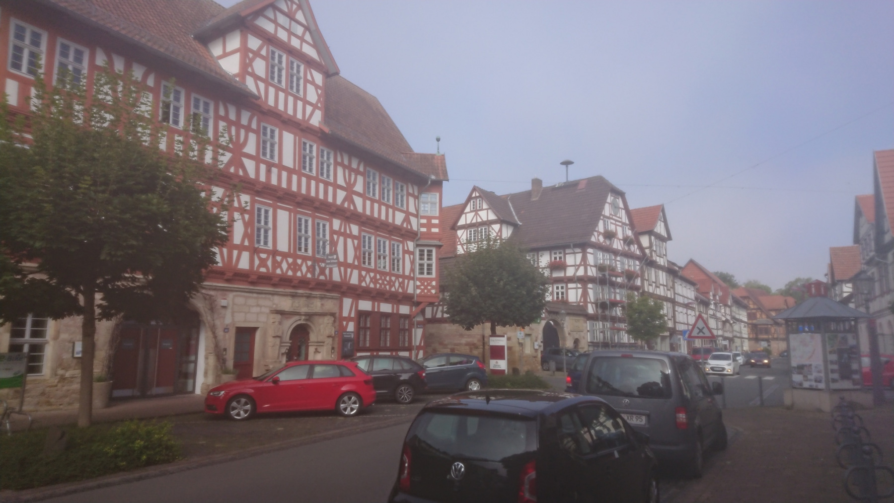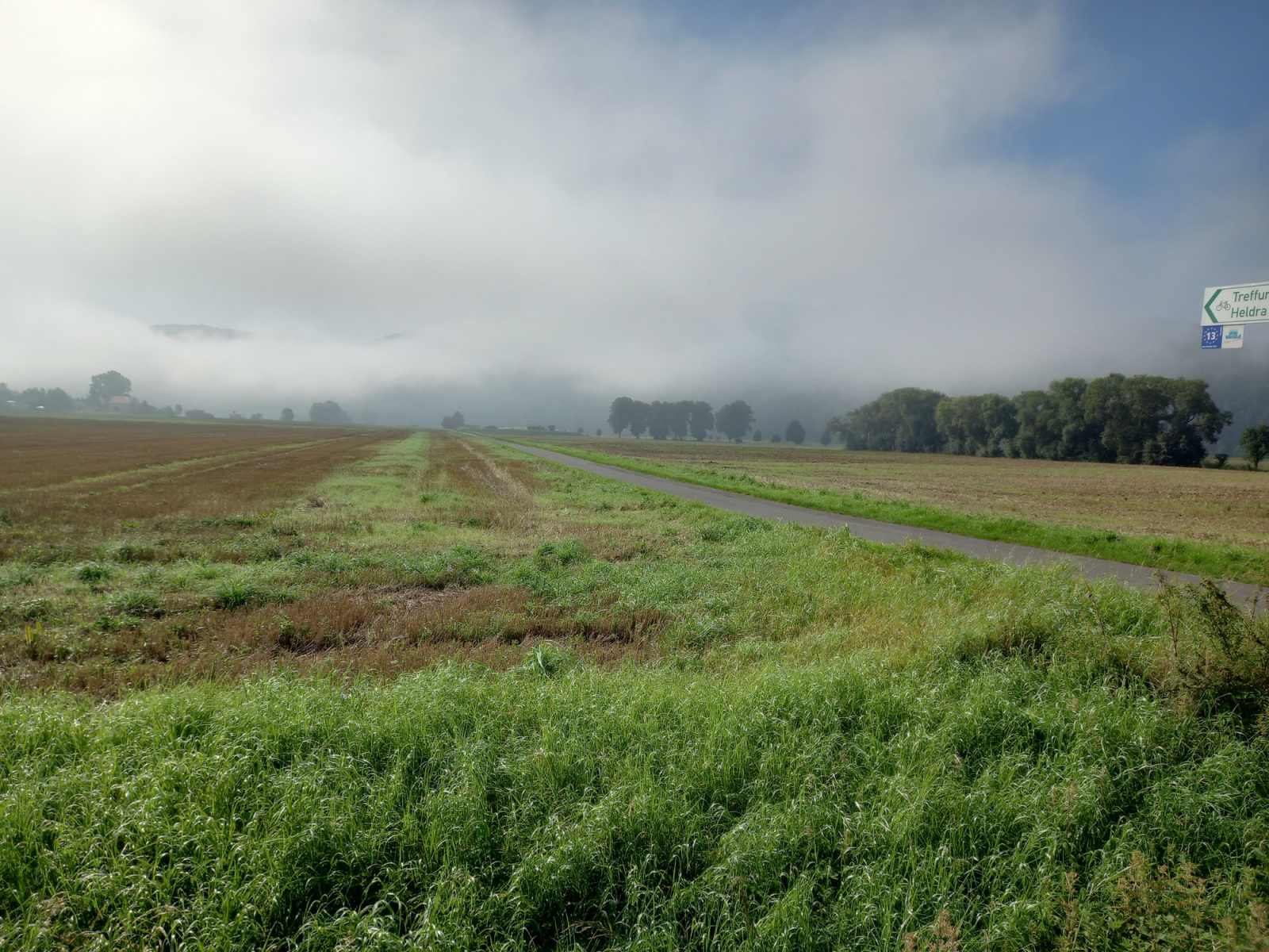 Erst nach Wanfried nach mehr als einer Stunde Fahrt lichtet sich der Nebel. An den umliegenden Hügeln hält er sich aber länger. Aber nach und nach bricht dann doch immer mehr die Sonne durch und löst den Nebel langsam auf.