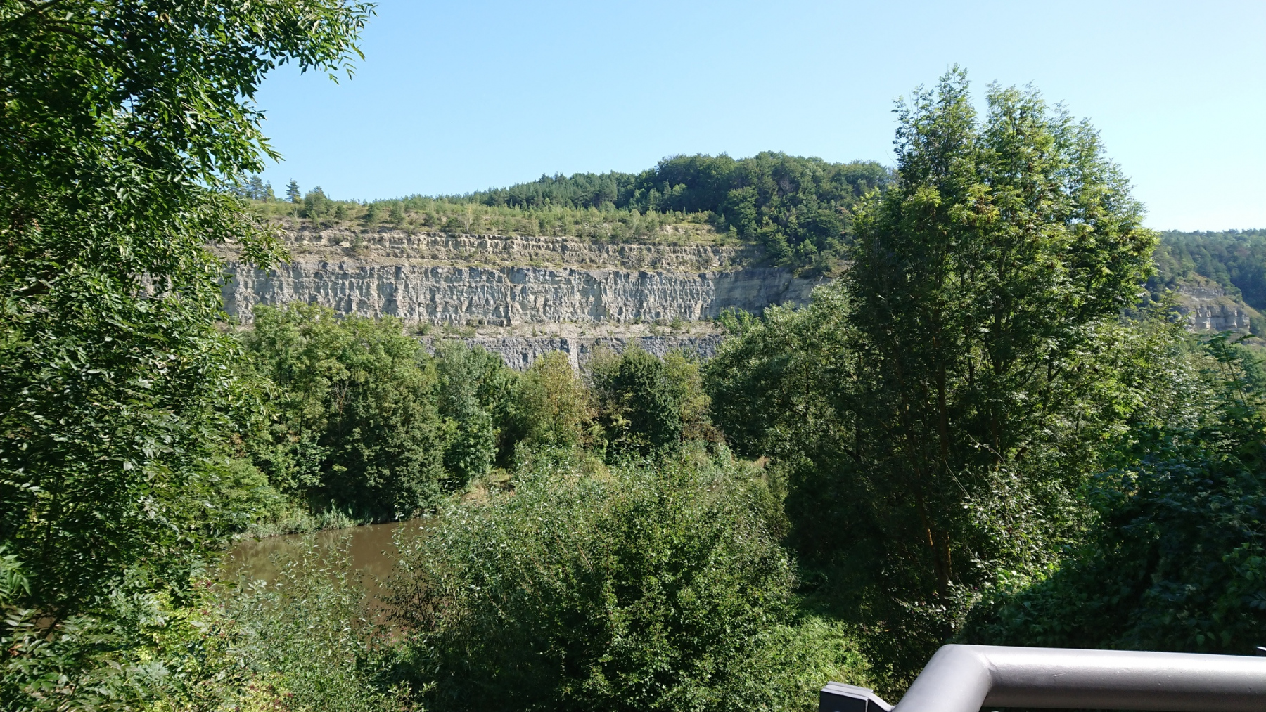 Kurz vor Treffurt passieren wir erneut die Grenze von Hessen nach Thüringen. Nachdem wir den kleinen Ort Falken passiert haben, wird es enger im Werratal. Die Hügel kommen nah an die Werra heran.