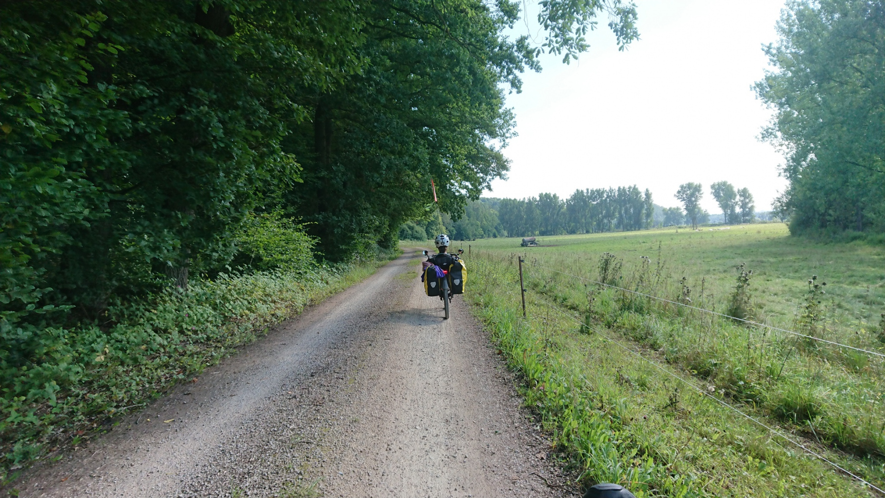 Nach einer guten Nacht, gehen wir morgens zum Bäcker im Ort. Das sind nur ein paar Meter. Obwohl wir gestern nachgefragt haben, was es denn zum Frühstück geben werde, bekommen wir nur eine kleine Auswahl dessen, was uns gestern zugesagt wurde. Aber das was wir bekomme ist echt lecker und der Preis mehr als fair. Zurück zur Pension, die Taschen packen und ans Rad und es kann losgehen.