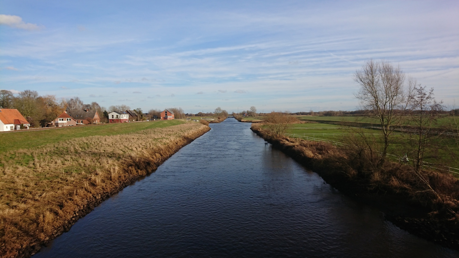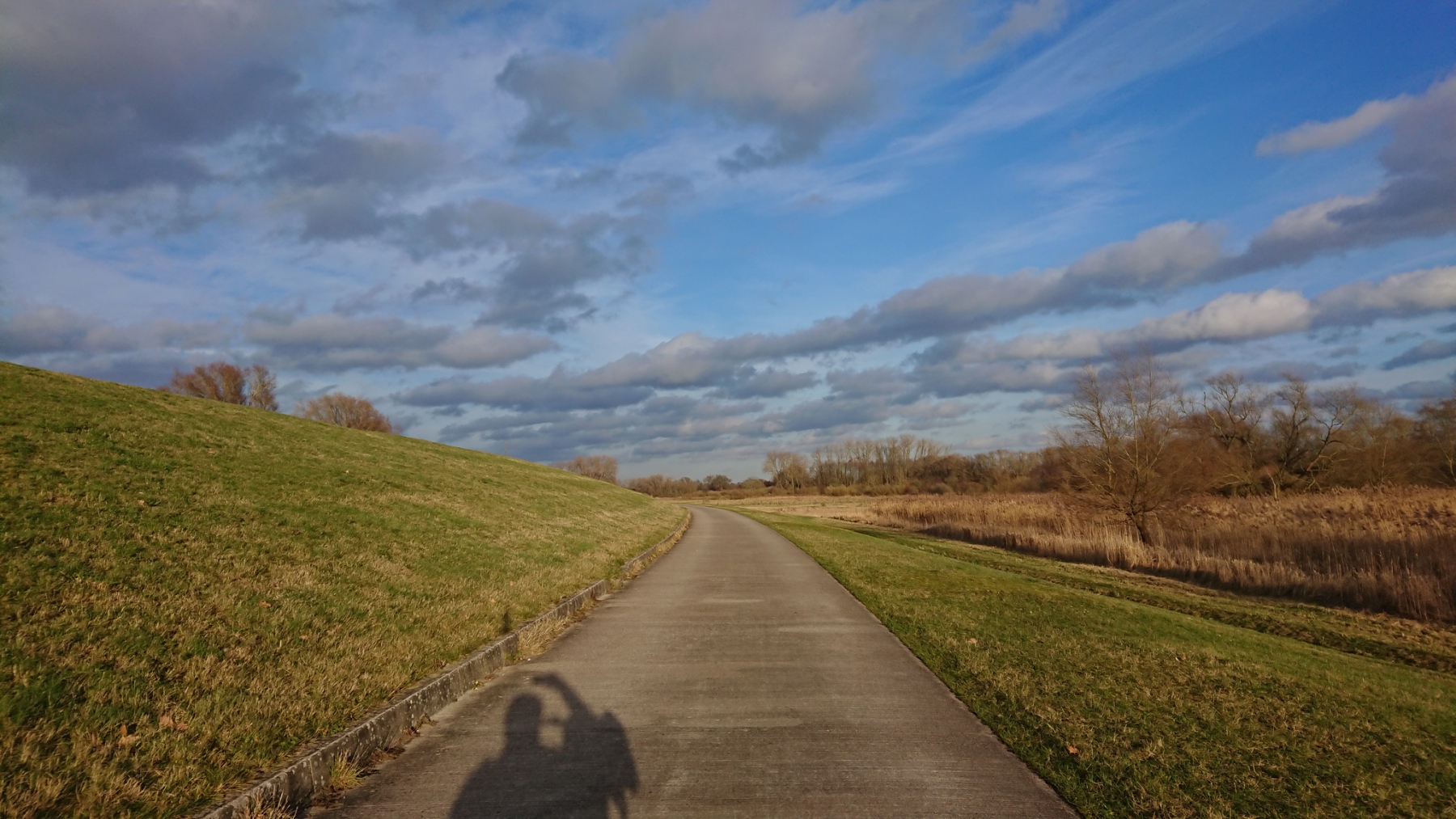 Gestern und heute konnte ich mal wieder fahren. Temperaturen um 8°C machten es angenehm zu fahren. Aber heute war es derart windig, dass ich stellenweise kaum die 20 km/h durchhalten konnte. Auf der anderen Seite hatte ich aber auch zum ersten Mal das Vergnügen, auf gerader Strecke am Deich keinen größeren Gang mehr zu haben. Irgendwie wurde ich immer schneller, der Rückenwind schob mich an. Von Lassrönne bis Drennhausen schaltete ich langsam alle Gänge durch und merkte dann, wie beim Schalten nichts mehr passierte. Ein Blick auf das Tacho : mehr als 40 km/h standen an. Der Rückenwind machte es möglich.