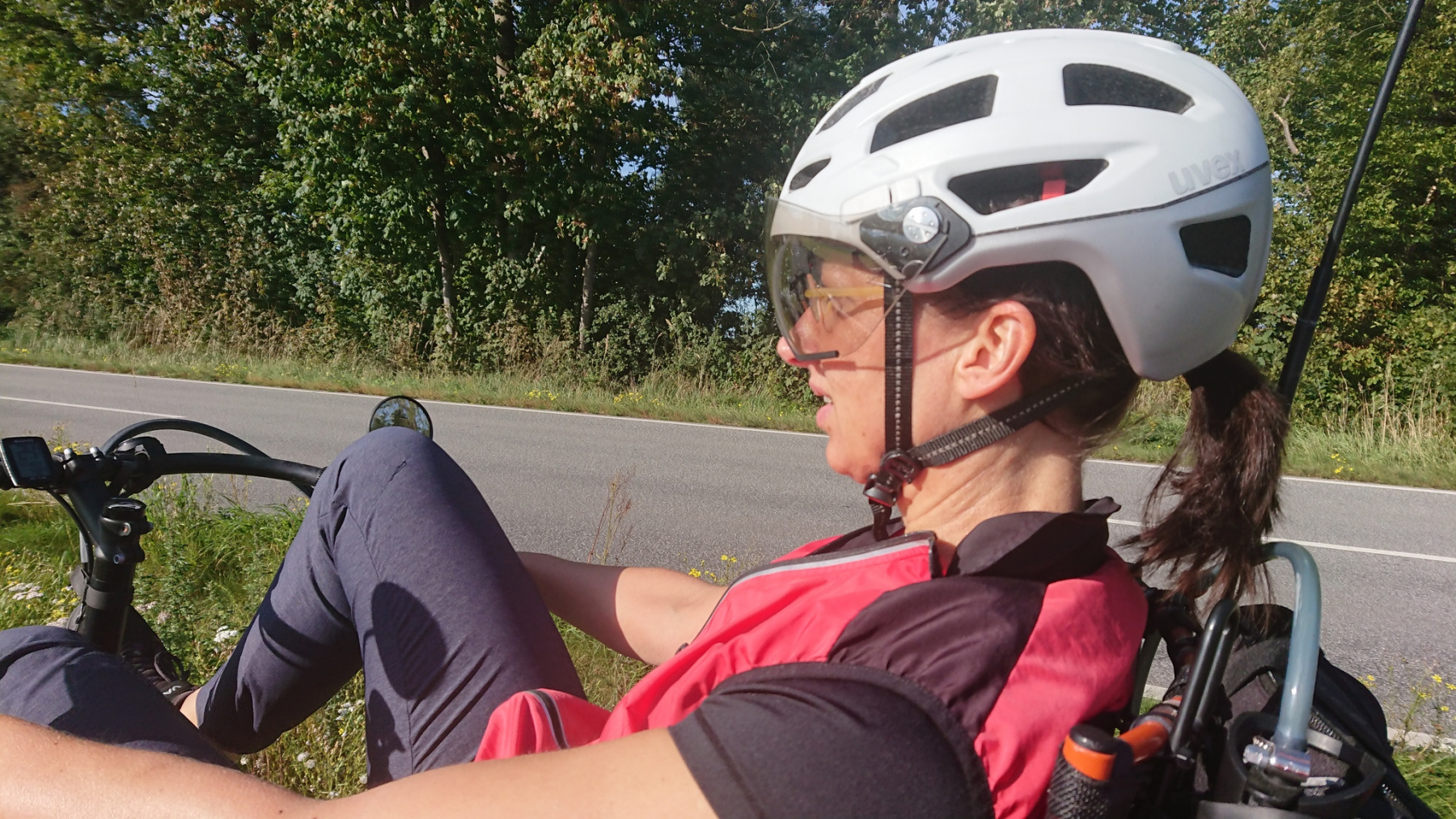 Die Radler neben uns auf der anderen Bank möchten gerne einmal sehen, wie wir mit den Liegerädern anfahren, nachdem wir mit ihnen ein kleines Gespräch hatten. Also zeigen wir ihnen, wie wir auf dem Wolf sitzen und wie wir anfahren. Eigentlich ja genauso wie mit jedem anderen Fahrrad auch: Hintern im Sitz oder auf dem Sattel, ein Fuß auf dem Boden, den anderen auf der Pedale, reintreten und dann den zweiten Fuß auf die Pedale und weiter treten.