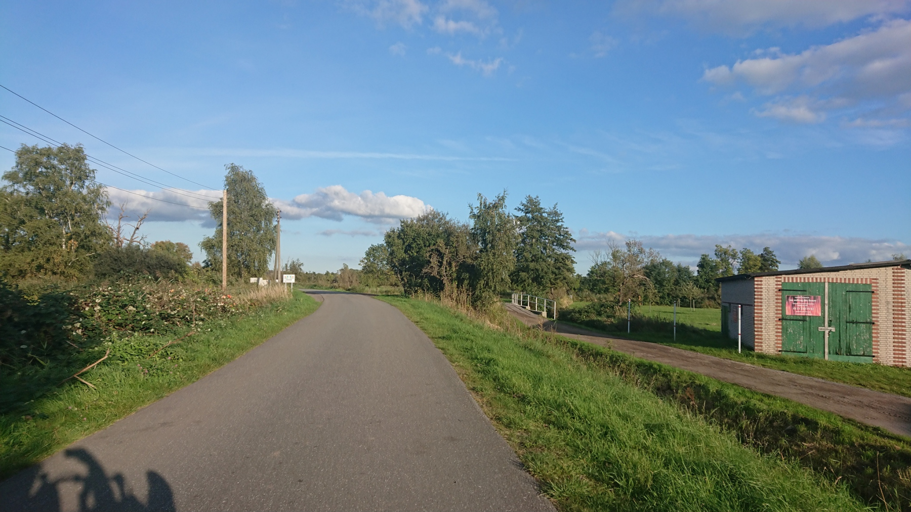 Und danach geht es erstmal auf Sandwegen weiter. Vor 3 Jahren waren sie in einem schlechten Zustand. Heute sind sie zumindest mit festem Sand belegt. Aber ein wenig verschaukelt fühlen wir uns dann doch, queren wir doch nach 1.5 km erneut die Landesstraße.