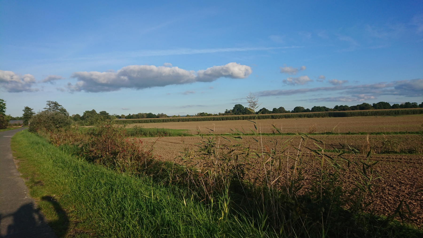 Heute war noch mal ideales Radlwetter. Also Rad raus, Luft auffüllen und dann nichts wie ab. Für 50 bis 60 km müßte es noch hell sein.