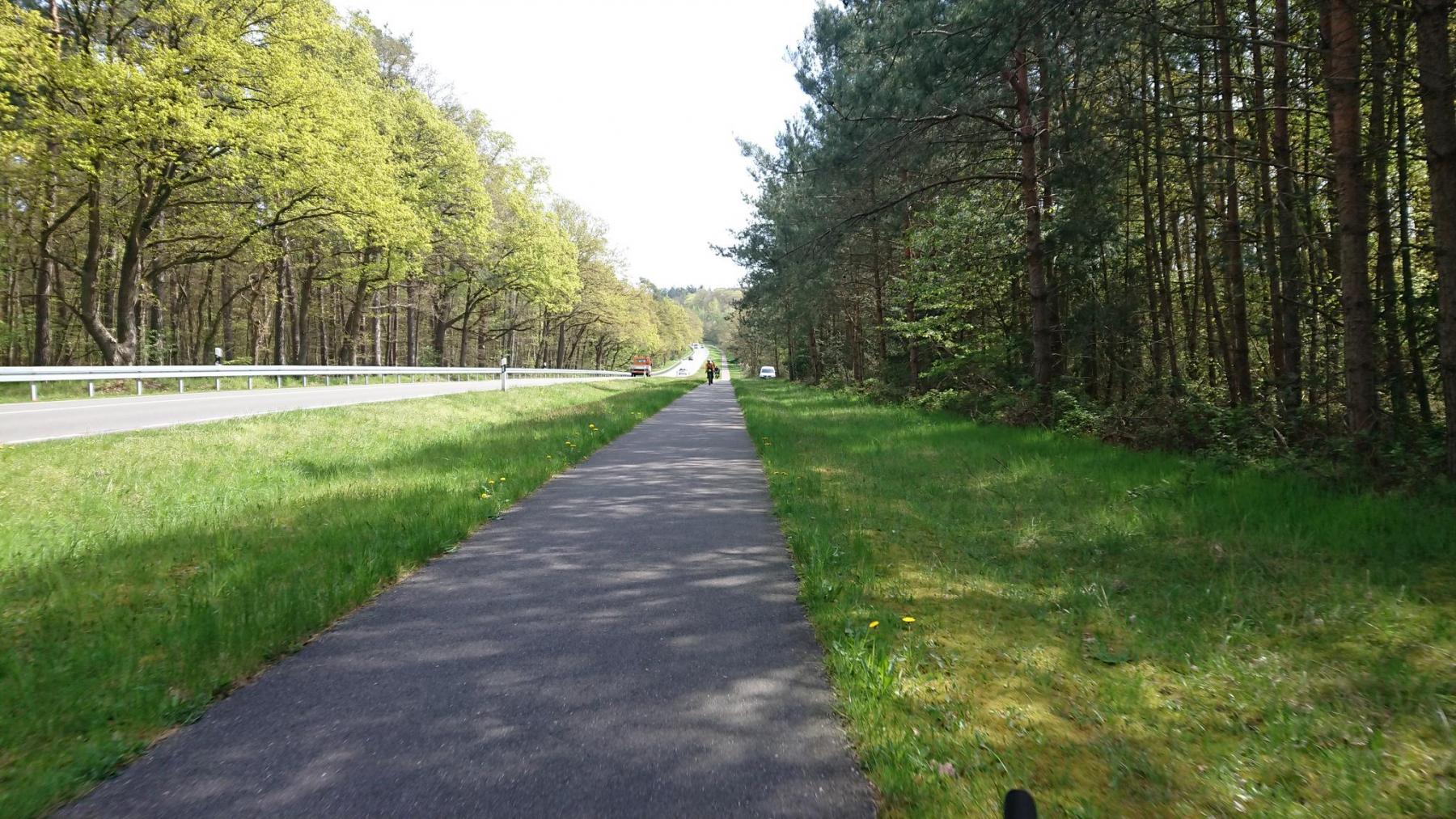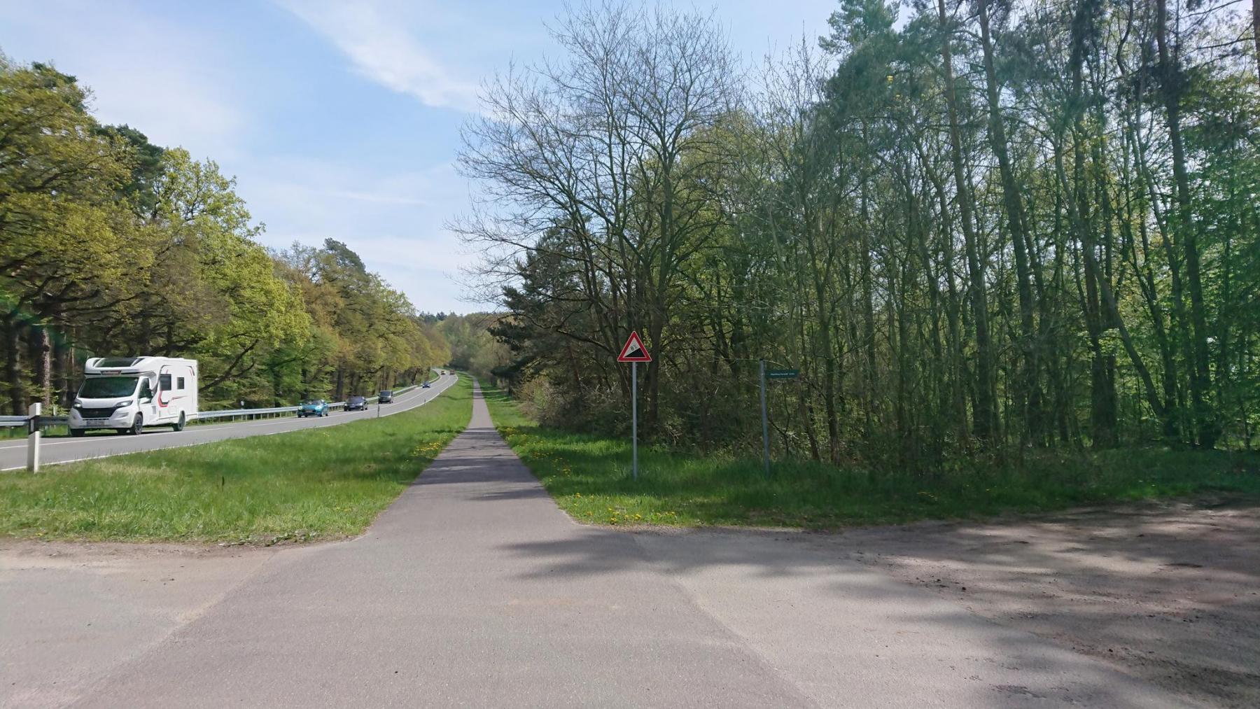 So sollte ein “offizieller” Radweg nicht aussehen. Einmal rutscht mir das Vorderrad weg und schnell liege ich im Sand auf der Seite. Rund 3km geht es so in Schrittgeschwindigkeit durch den Wald. In der Ferne sind die Geräusche einer Straße zu hören und die werden langsam lauter. Eigentlich viel zu laut je näher wir kommen. Die K16 verbindet Bienenbüttel mit den umliegenden Ortschaften. Dafür ist hier eindeutig zu viel los. Wie wir ein wenig später herausfinden ist die B4 zwischen Bienenbüttel und Melbeck gesperrt und die K16 scheint die heimliche Umleitung zu sein. Auto an Auto und viele Motorräder mit Kennzeichen aus allen Kreisen Deutschlands sind unterwegs. Die Straße ist schmal, einen Rad- oder Fußweg gibt es nicht. Wir müssen uns zwangsläufig in den Verkehr einordnen. Aber Rücksicht seitens der anderen ist nur selten zu finden. Da wird man eng überholt, abgedrängt, und so weiter. Irgendwie schaffen wir die rund 6km aber schön ist das nicht und wir sind froh, als in Niendorf ein Radweg beginnt und wir in Bienenbüttel die K16 verlassen können.