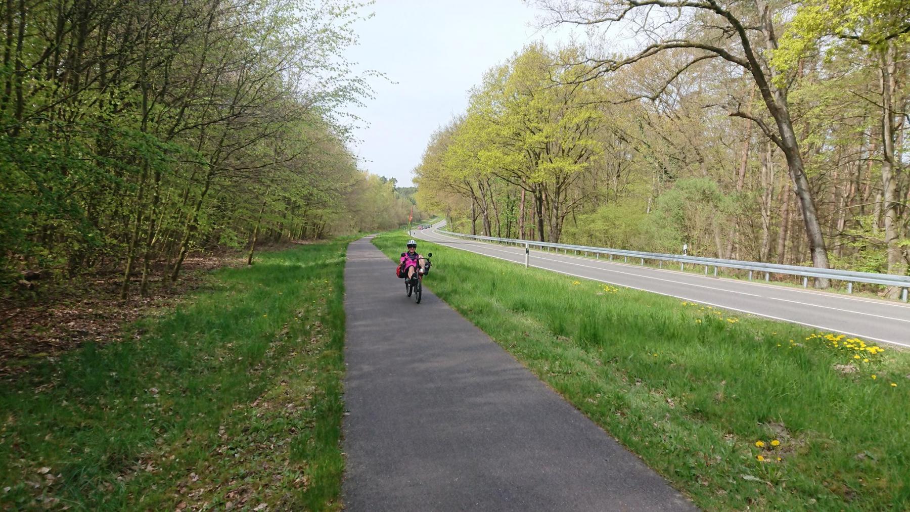 Vermutlich wäre der 3-4km weitere Weg von Südergellersen über Kirchgellersen auf Radwegen und asphaltieren Straßen schneller als der Strecke über die unbefestigte direkte Verbindung. Nun ja, auch hier ist wieder viel Sand vorhanden. Aber es gibt auch noch einen Abschnitt, der uns besonders gefallen hat; zwischen Vierhöfen und Bahlburg biegen wir rechts ab und fahren Richtung Norden. Diese Strecke scheinen auch viele Rennradfahrer sehr zu schätzen, denn verglichen mit den anderen Strecken sind hier übermäßig viele Rennradfahrer unterwegs.