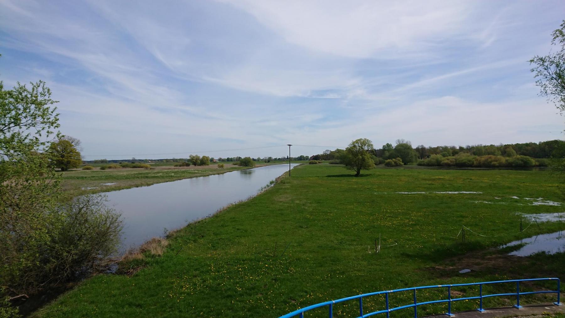 Einmal über die Havel, dann zwischen Havel und Elbe durch Wiesen und Felder, nochmal über die Havel und dann am Gnevsdorfer Vorfluter entlang bis zur Mündung desVorfluters in die Elbe.