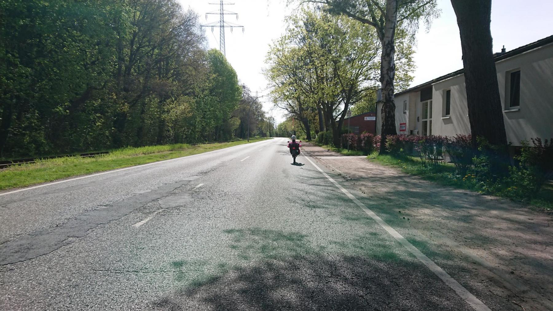 Und was man raufgefahren ist, kann man hier bei uns im Norden dann auch schnell wieder herunterfahren. Schon wenige einhundert Meter später geht es in Boizenburg genauso wieder hinunter. Die Straße ist frei, gut ausgebaut und wir können es laufen lassen.