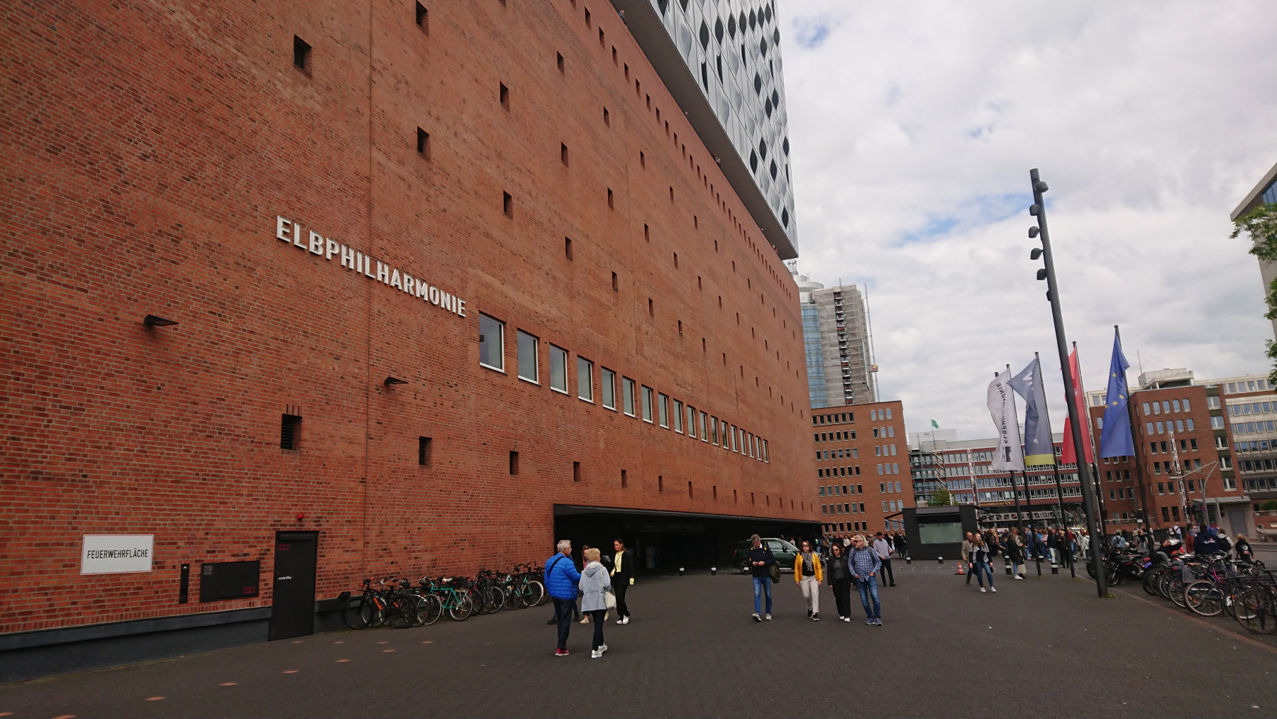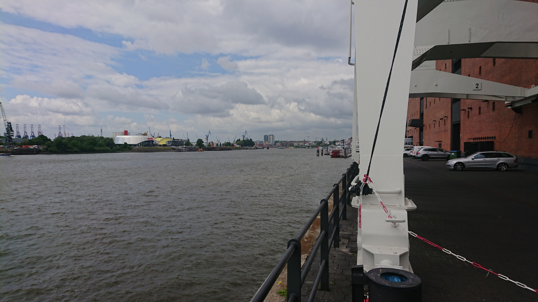 Brötchen ist aufgegessen, die Selter leer, für uns geht es weiter am Kaiserkai entlang. Der Track wechselt dann vom Kaiserkai auf den Dalmannkai – aber da sind nur Treppen zu sehen. Wir bleiben auf dem Kaiserkai und kommen direkt an der Elphie raus. Hier tummeln sich die Touris. Alle vollen auf die Plaza der Elphie. Am Einlass stehen sie mehr als 100 m weit an.