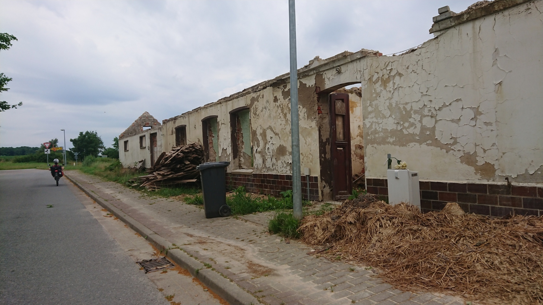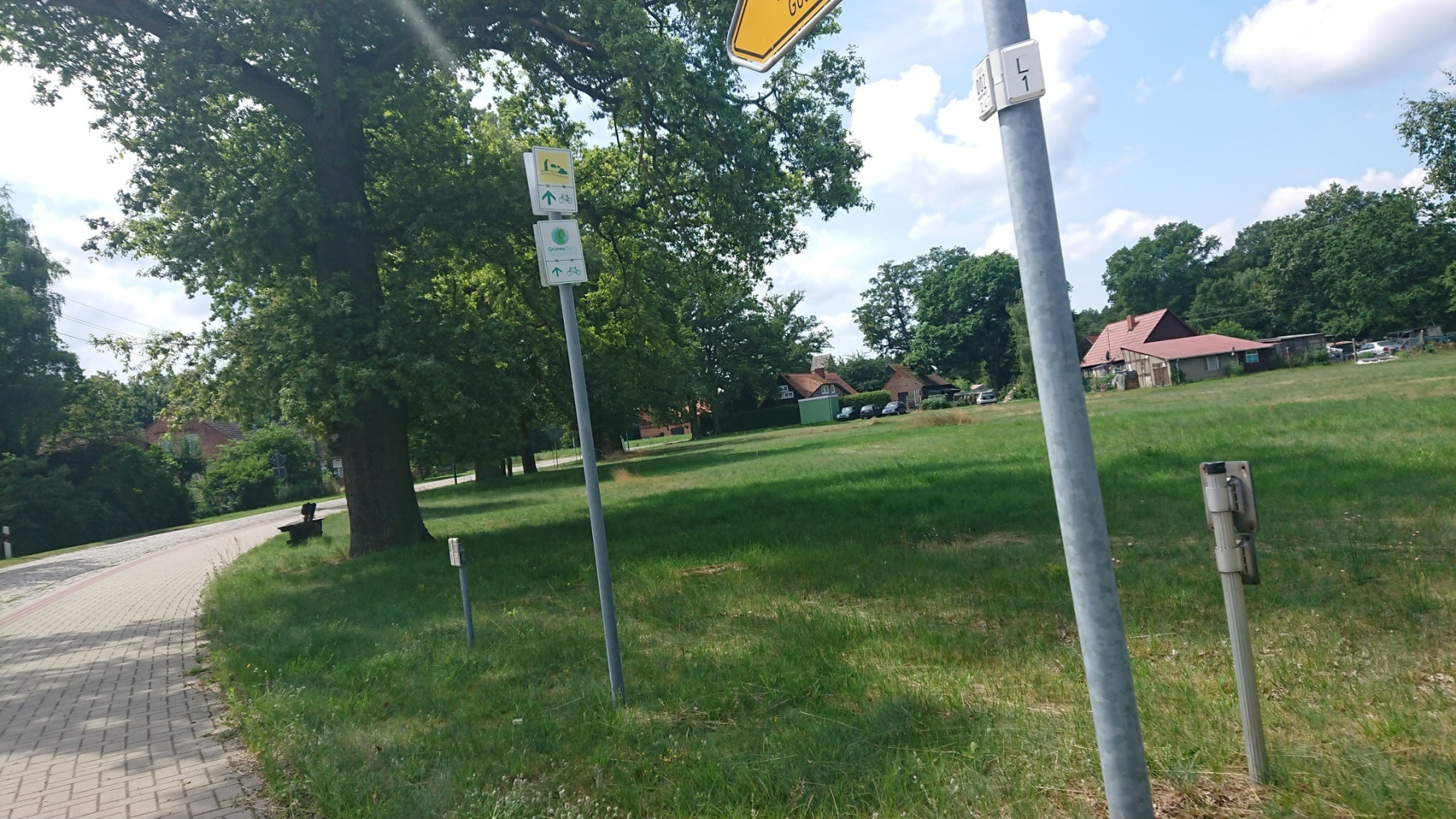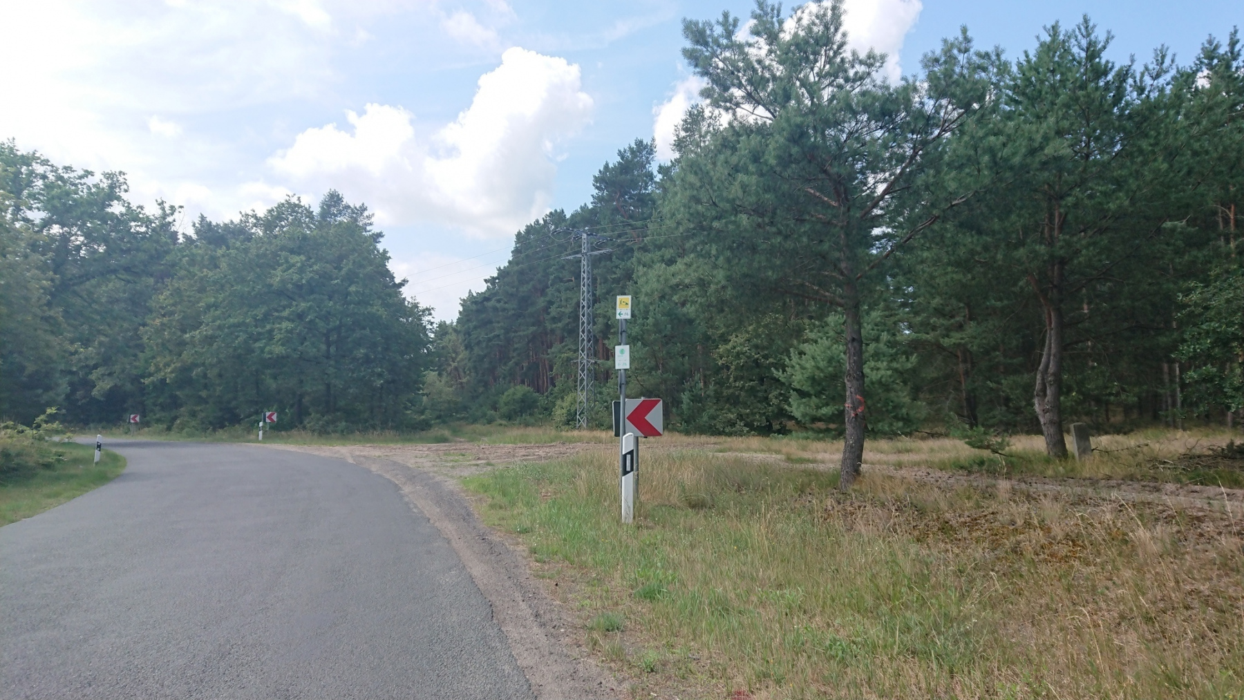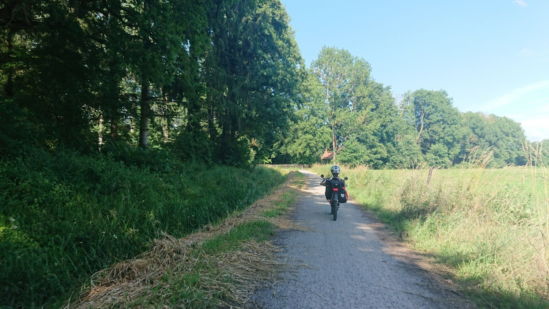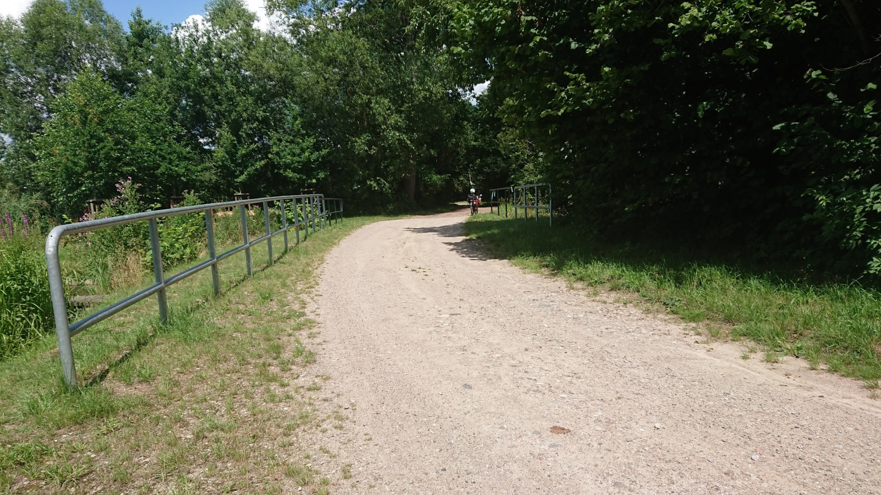 Unsere Strecke verläuft nun erstmal parallel zur Bahnlinie nach Osten. Auf Schotterwegen und Waldwegen fahren wir dicht an oder parallel zur Bahnline. Die Strecke wird immer schlechter, nur in den Ortschaften ist noch mal Asphalt, aber auch der wird immer mehr durch Kopfsteinpflaster ersetzt. Kurz nach Riebau geht die Straße dann in einen Sand- bzw Schotterweg über. Daneben verläuft eine weitere Spur, die als Radweg beschildert ist, aber nicht so aussieht.