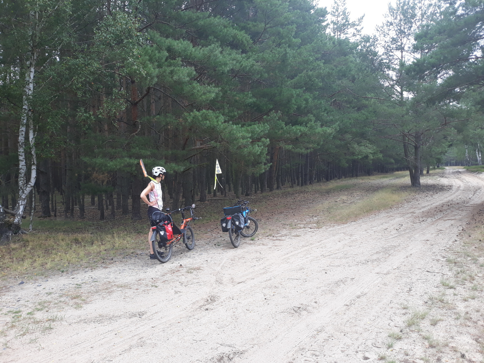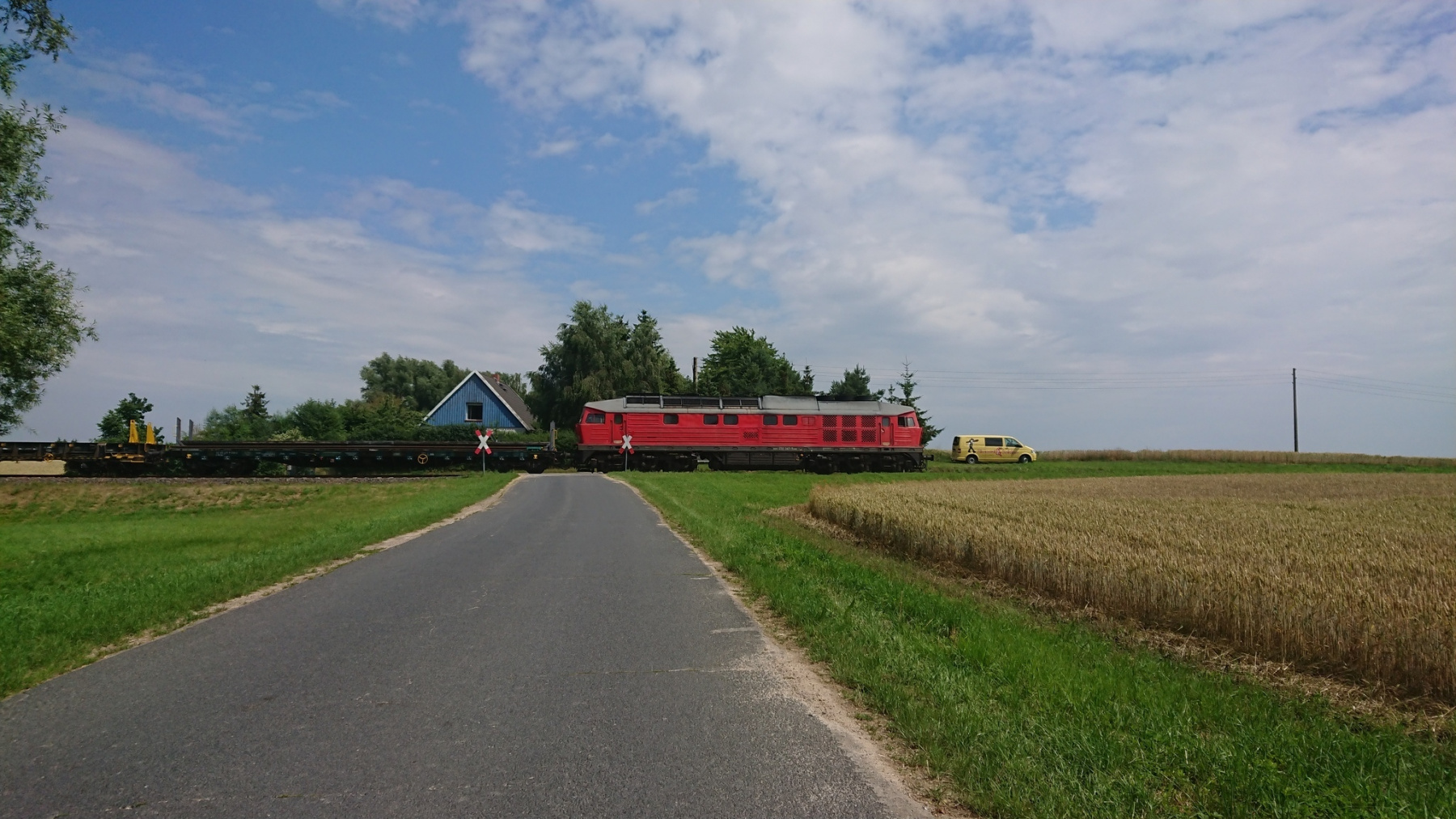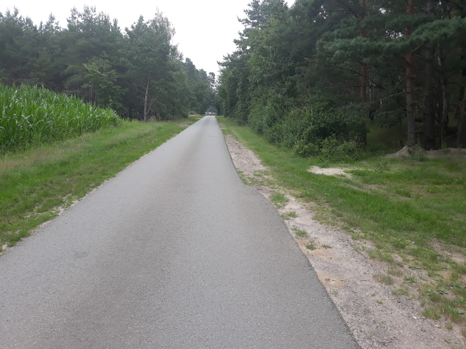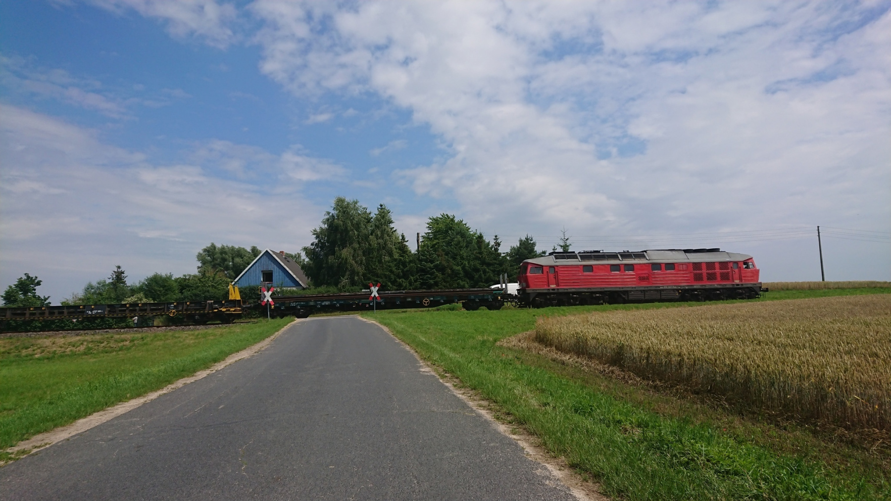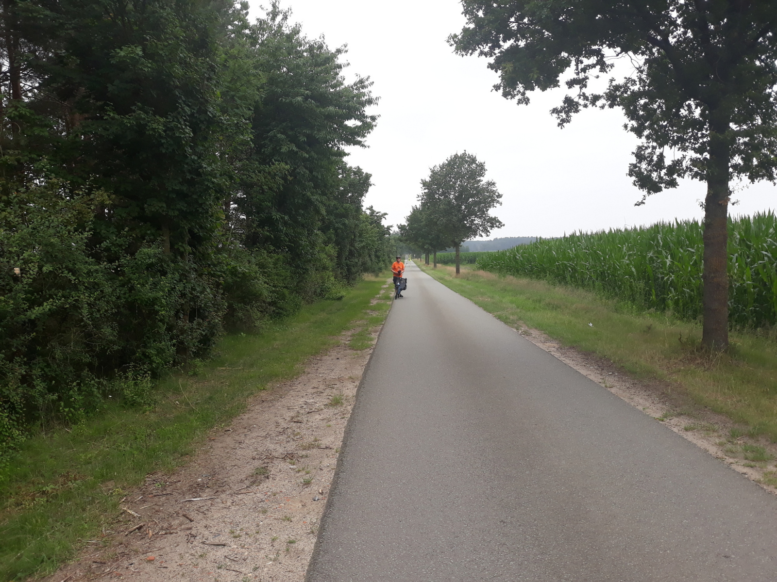 Unsere Strecke verläuft nun erstmal parallel zur Bahnlinie nach Osten. Auf Schotterwegen und Waldwegen fahren wir dicht an oder parallel zur Bahnline. Die Strecke wird immer schlechter, nur in den Ortschaften ist noch mal Asphalt, aber auch der wird immer mehr durch Kopfsteinpflaster ersetzt. Kurz nach Riebau geht die Straße dann in einen Sand- bzw Schotterweg über. Daneben verläuft eine weitere Spur, die als Radweg beschildert ist, aber nicht so aussieht.