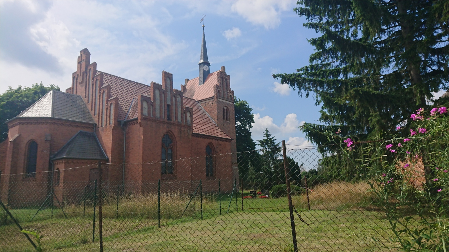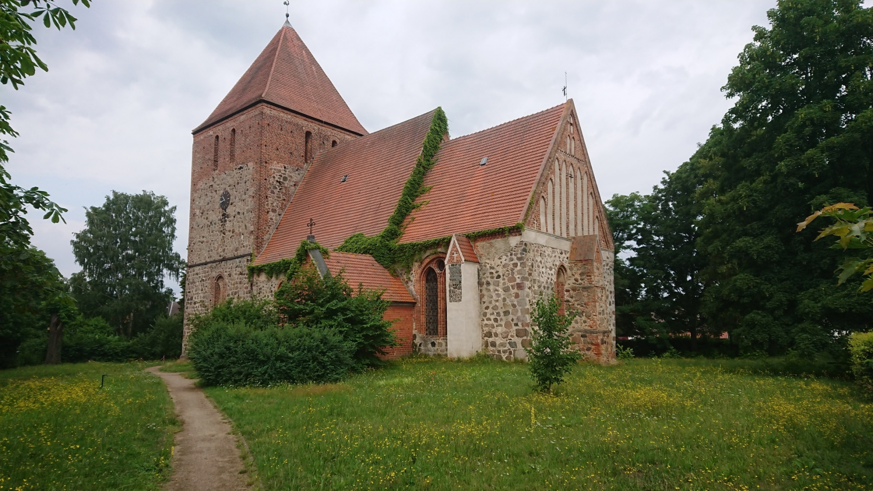 An der Fähre in Lenzen erkundigen wir uns kurz, ob denn die Fähre in Schnakenburg auch trotz des Wasserstandes der Elbe in Betrieb ist. Der Fährmann bejaht und wir machen uns auf nach Lenzen, einem kleinen verschlafenen Ort in Brandenburg an der Elbe. Nachdem wir die Kirche auch von innen angeschaut haben, stellen wir fest, dass wir noch keinen Laden oder Bäcker gesehen haben. Andere Radfahrer bemühen an der Kirche grad das Handy um einen Bäcker zu finden. Einige Straßen weiter gibt es tatsächlich einen Bäcker. Vermutlich ist der Kuchen aber ausverkauft, nachdem die 8 Radfahrer dort eingekauft haben.