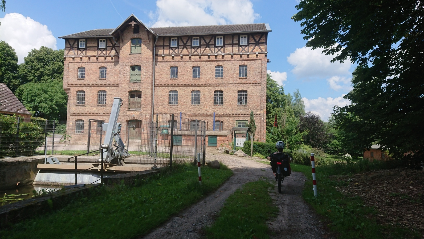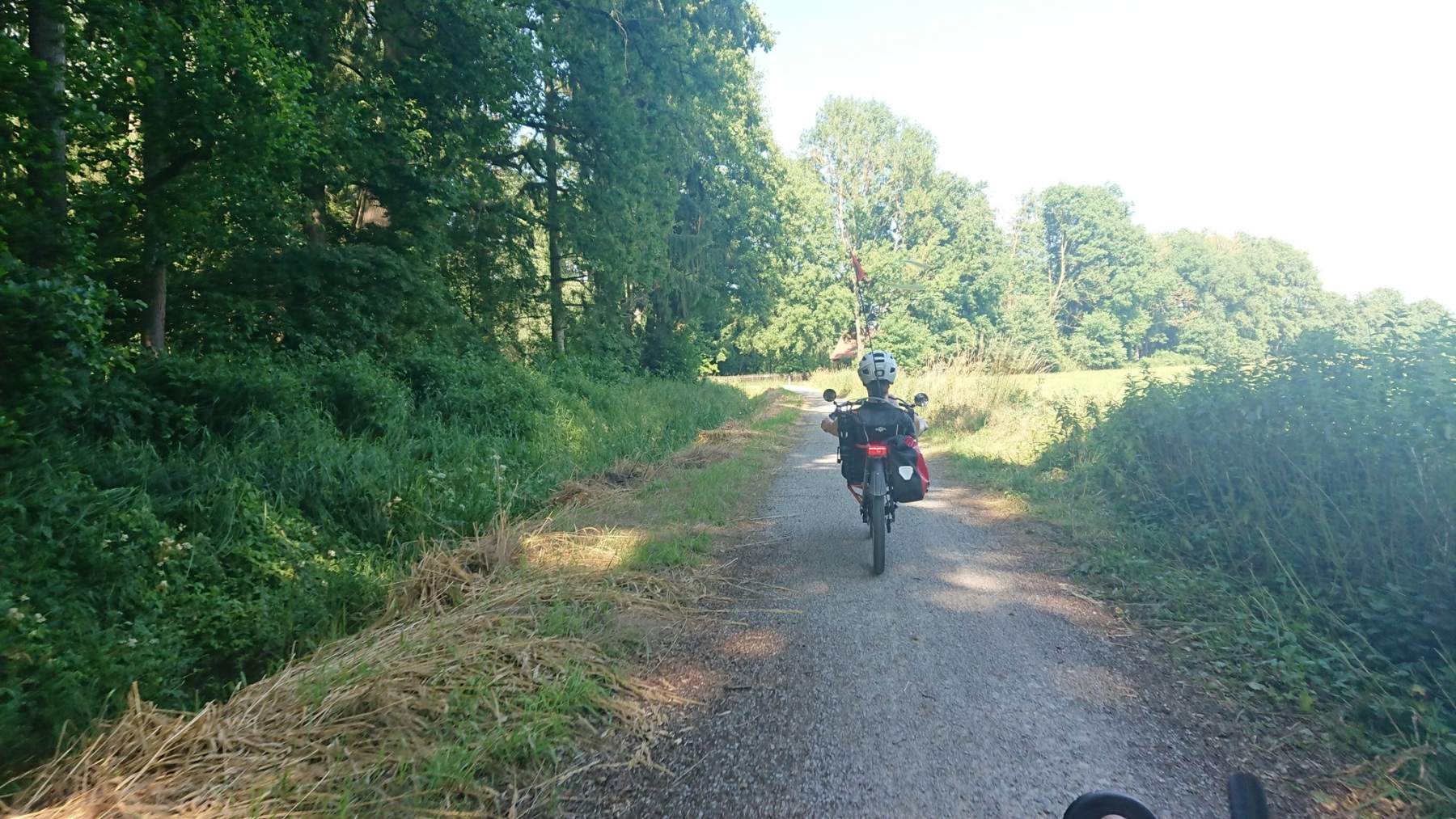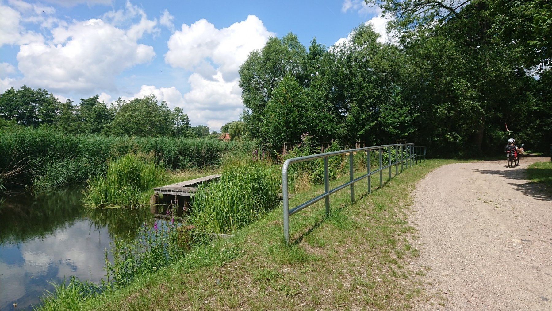 Um 10:00 Uhr fahren wir los, uns schon gleich zu Anfang etwas Nettes; Auf einer Brücke können wir die viel befahrene Ortsumgehung der B493 überqueren. Und dann sind wir auch schon aus Lüchow raus und fahren parallel zur Rücktour gestern Richtung Gorleben.