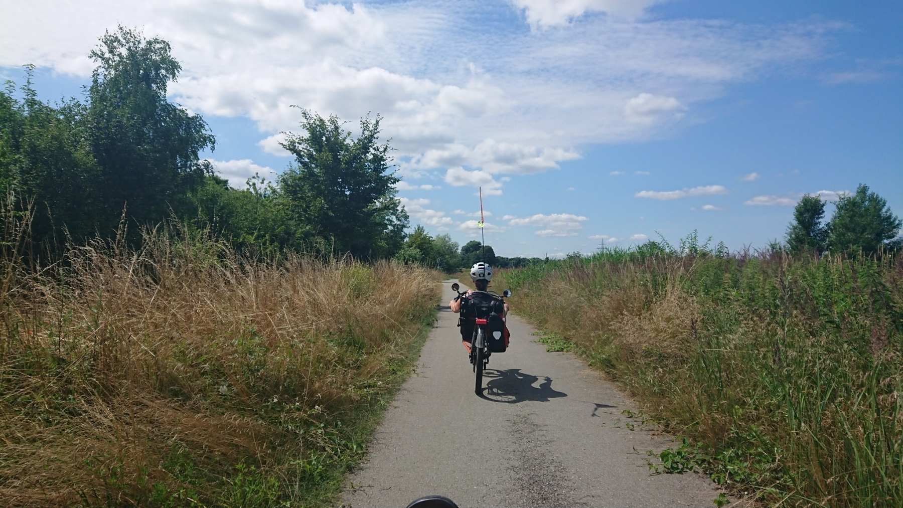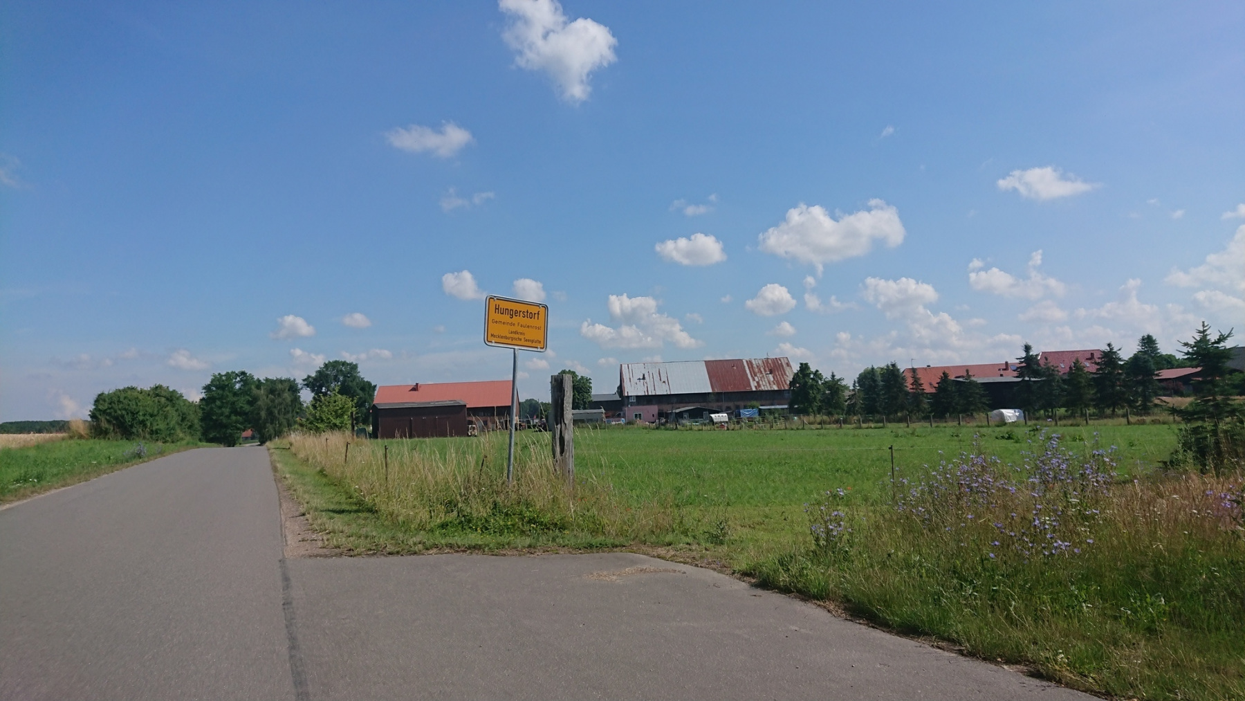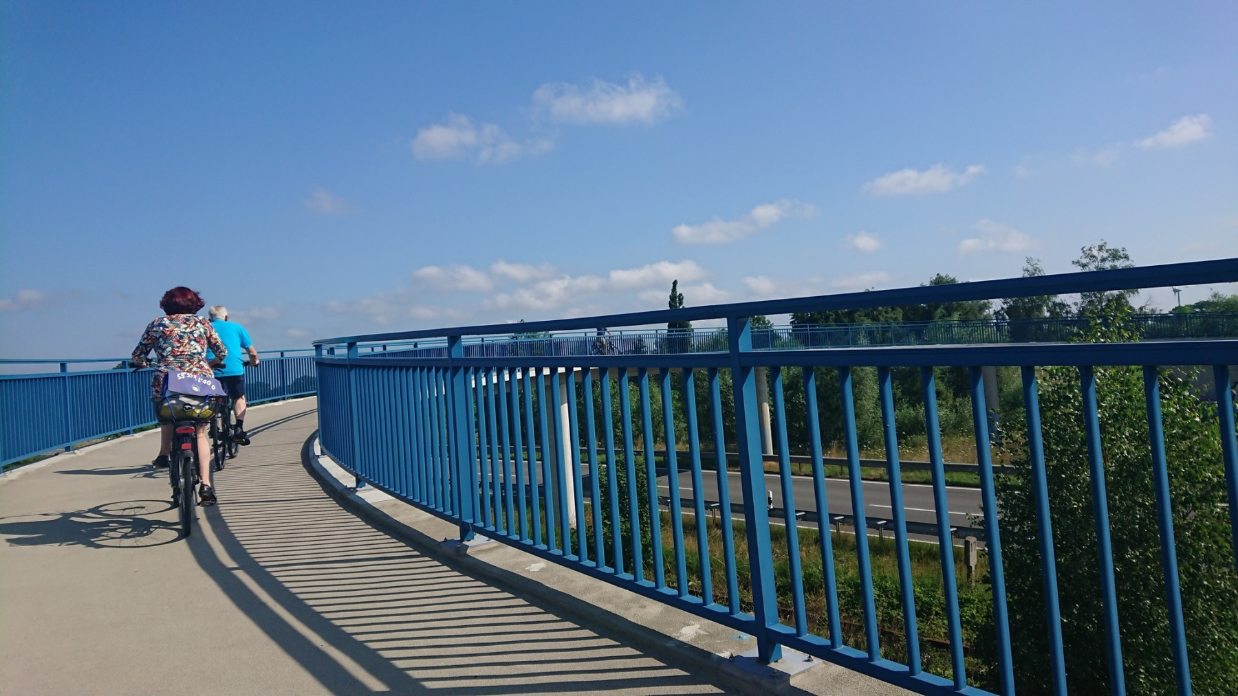 Um 10:00 Uhr fahren wir los, uns schon gleich zu Anfang etwas Nettes; Auf einer Brücke können wir die viel befahrene Ortsumgehung der B493 überqueren. Und dann sind wir auch schon aus Lüchow raus und fahren parallel zur Rücktour gestern Richtung Gorleben.