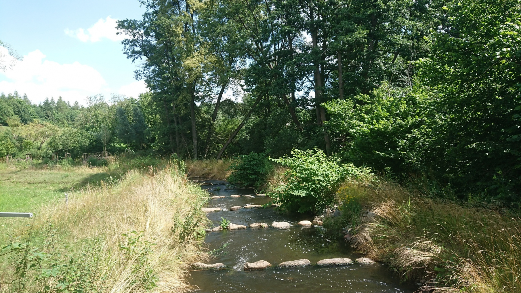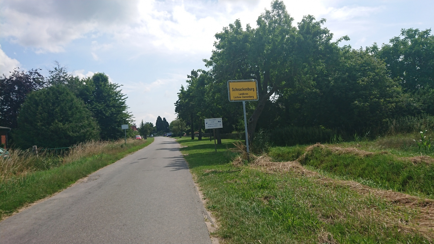 Auf einem neuen gut ausgebautem Radweg fahren wir wieder Richtung Niedersachsen. Wo früher der Grenzzaun stand, steht heute ein Schild. Wäre das Schild nicht gewesen, wir hätten den Übergang vermutlich nur am schlechter werdenden Radweg bemerkt.