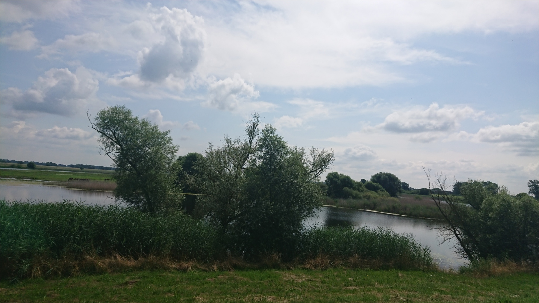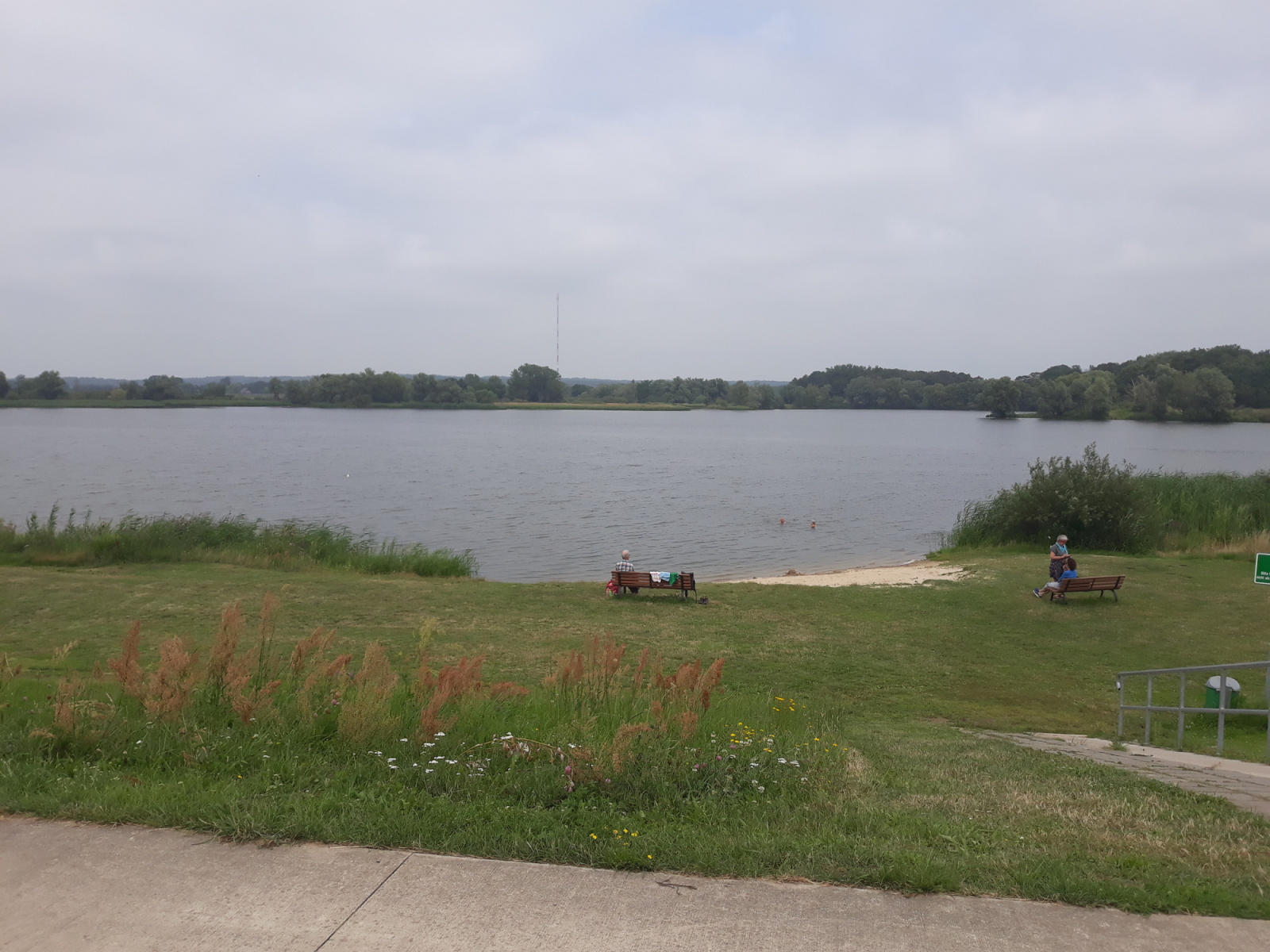 Unser eigentliche Pause machen wir am Deich in Schnakenburg und blicken zurück auf die Elbe.