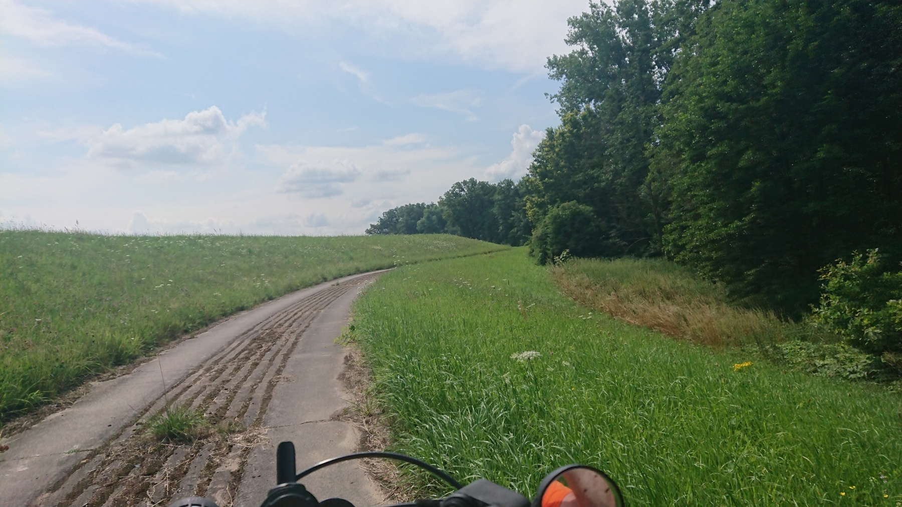 Wir folgen dem Altmarkrundkurs bis nach Mechau, dann verlassen wir ihn und biegen nach Norden ab. Die Landesgrenze von Sachsen-Anhalt nach Niedersachsen bildet auch hier wieder ein Betonplattenweg, vermutlich noch aus DDR-Zeiten.
