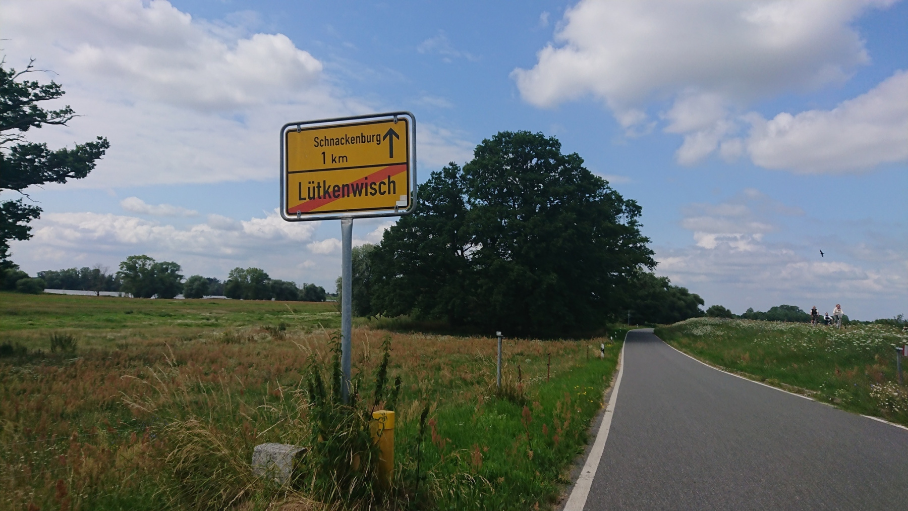 Um 10:00 Uhr fahren wir los, uns schon gleich zu Anfang etwas Nettes; Auf einer Brücke können wir die viel befahrene Ortsumgehung der B493 überqueren. Und dann sind wir auch schon aus Lüchow raus und fahren parallel zur Rücktour gestern Richtung Gorleben.