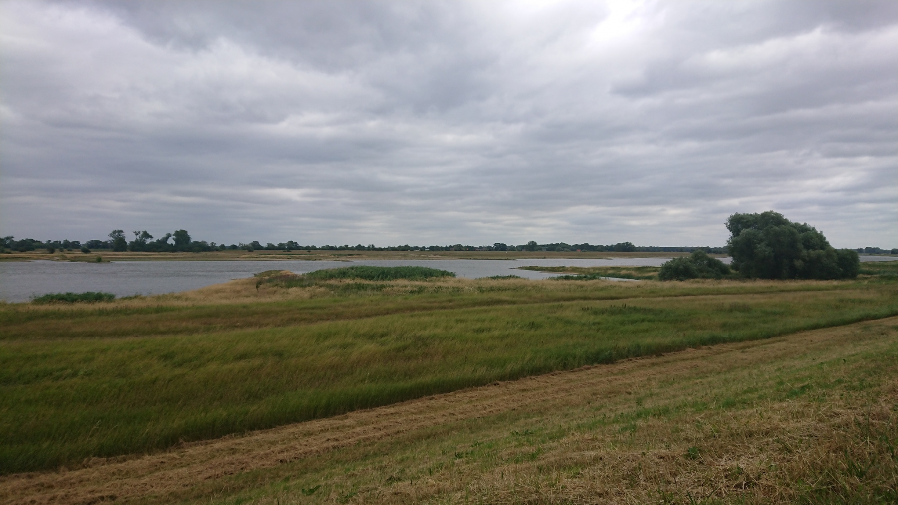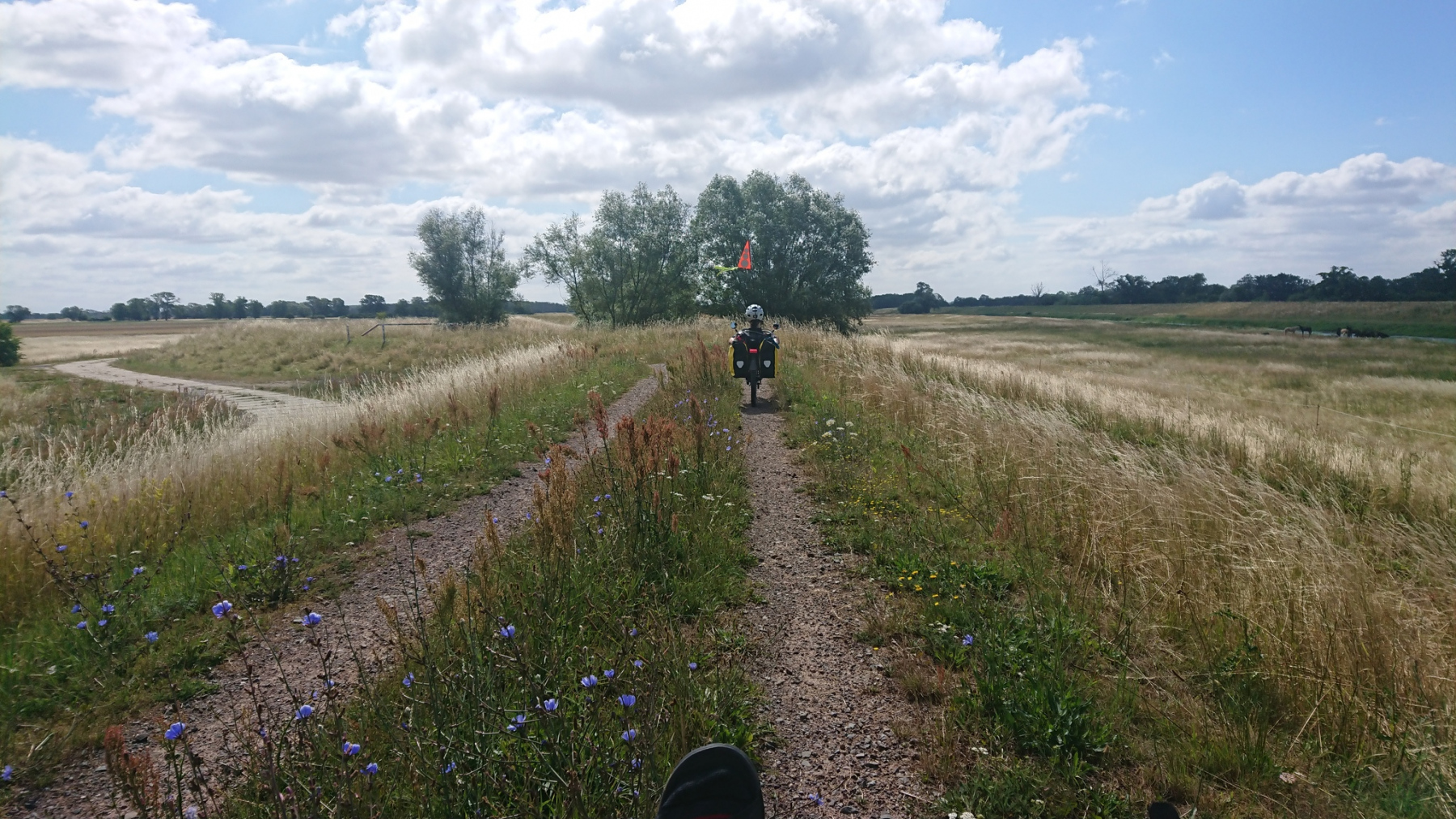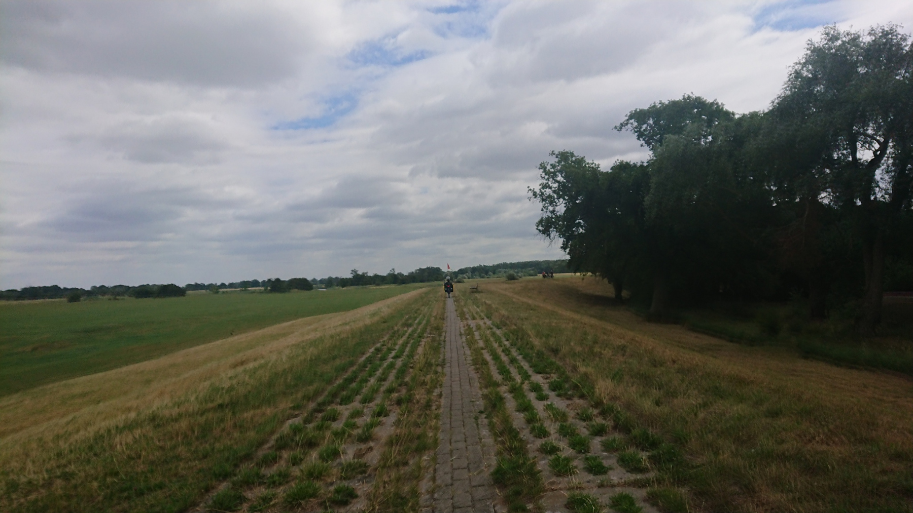 Vom Deich aus ist die Elbe aber nur selten zu sehen. Wenn wir mal auf dem Deich fahren können, dann sieht man meist nur das Deichvorland. Wo genau die Elbe ist, ist nicht zu sehen. Meistens fahren wir aber am Deichfuß.